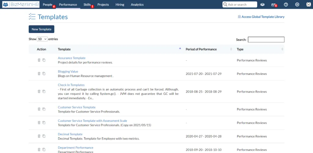 Specify the accessibility levels for the performance review template as self review, peer review or other so as to get detailed review from all the organisational stakeholders.
