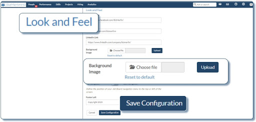 - Click on the “Save Configuration” button to save the settings. You have successfully added a background image on your Job Board.