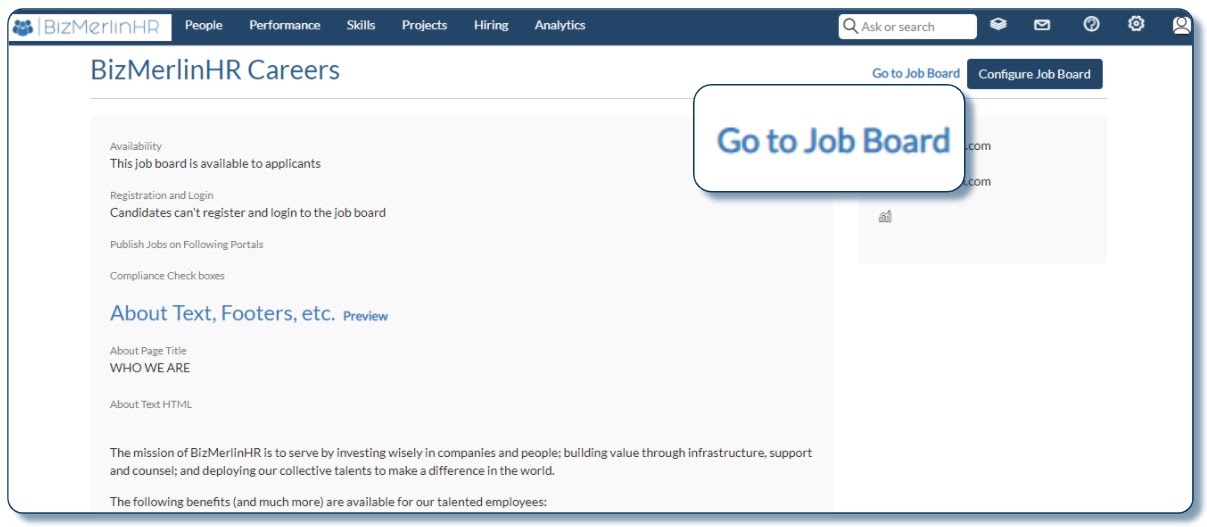 - Navigate to the Hiring Configuration page by clicking on the “Configure Job Board” button.