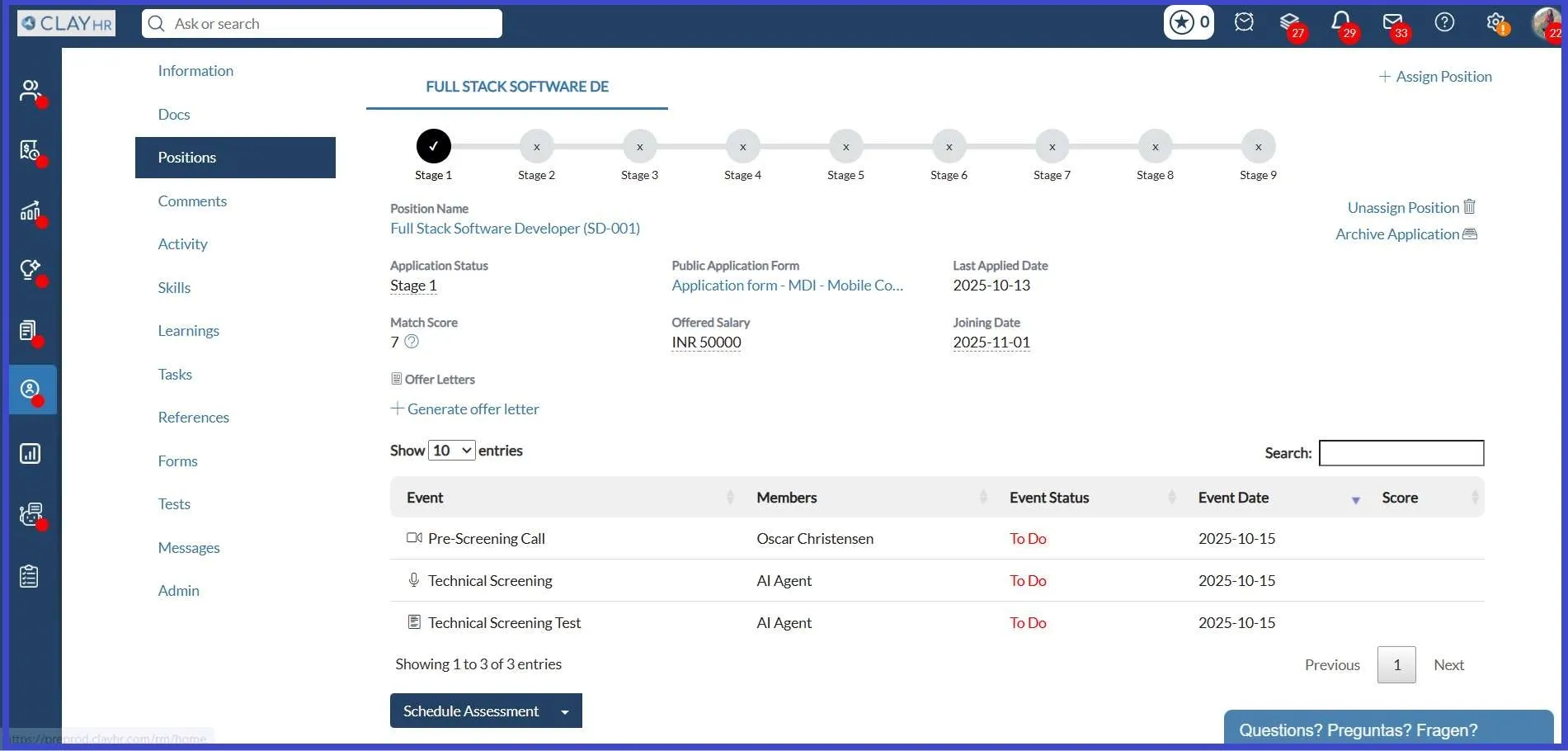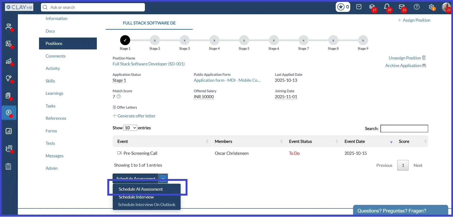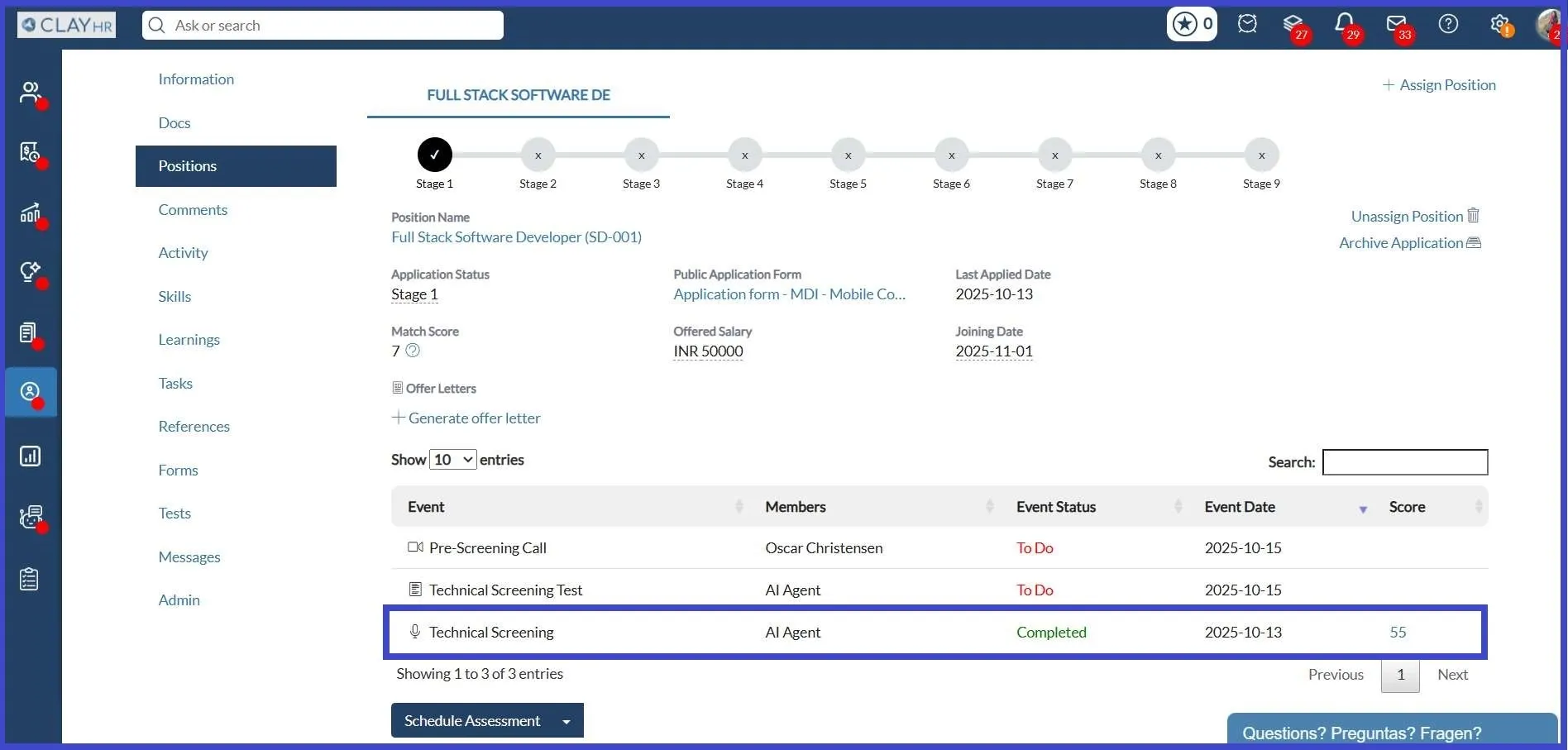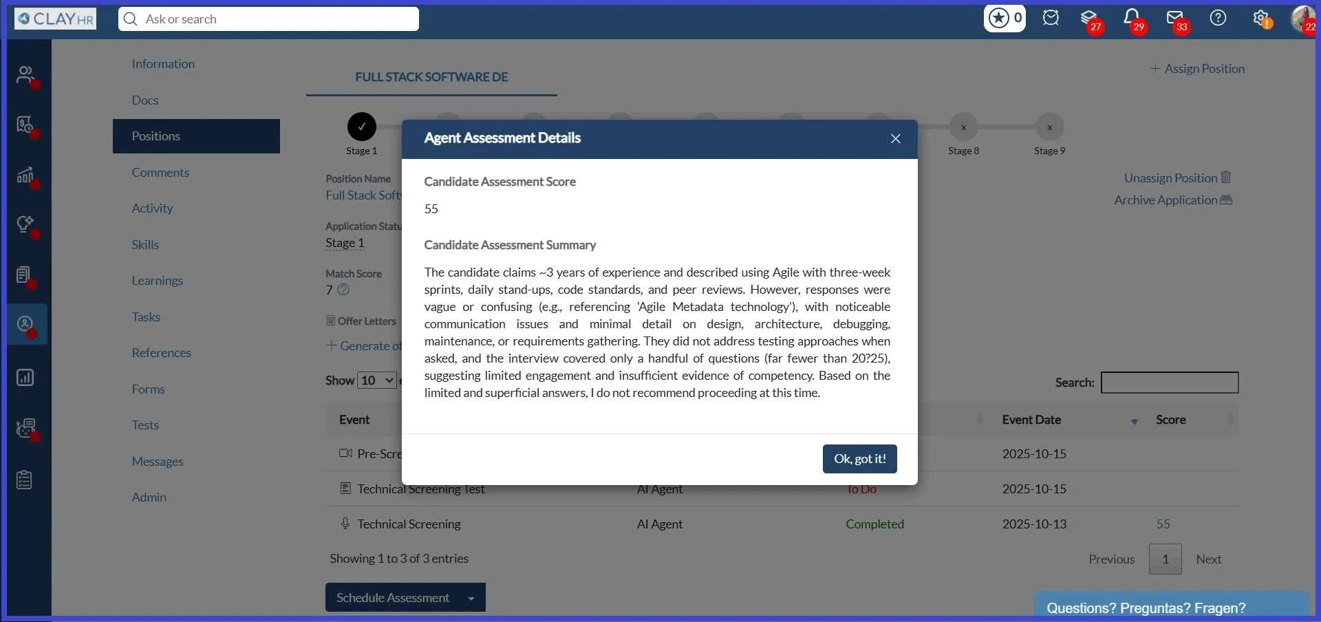 - Once completed, recruiters can view the AI-generated score on the Candidate’s Position View page.