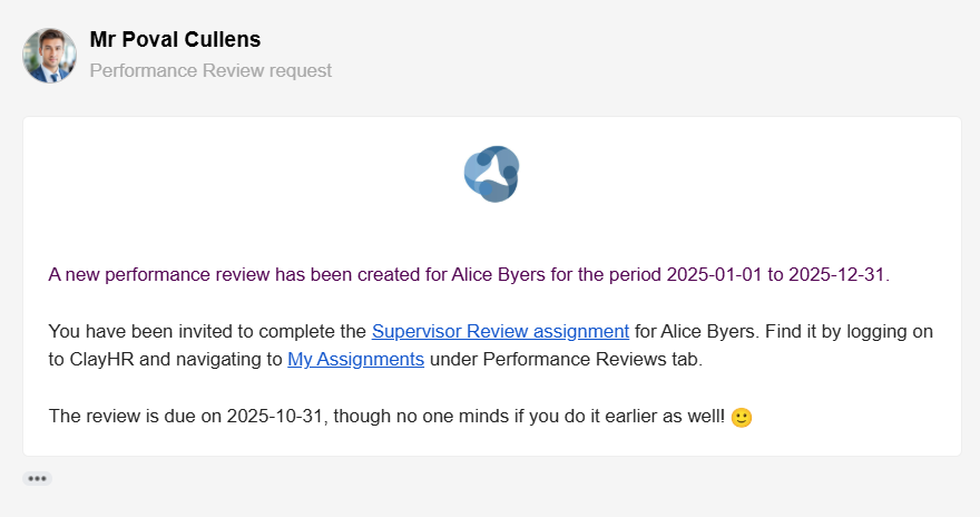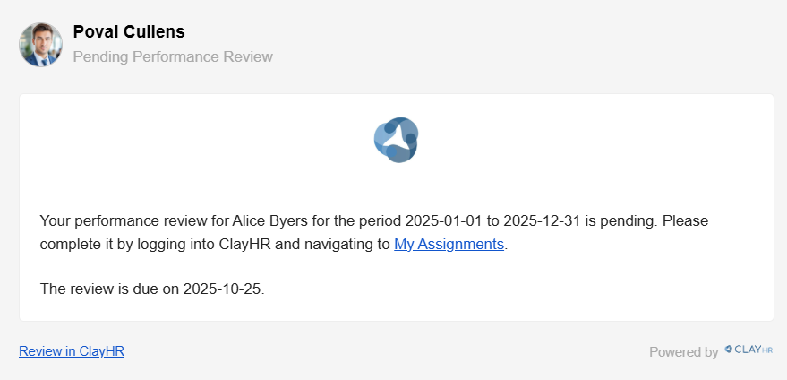 Performance Review Assignment Notifications