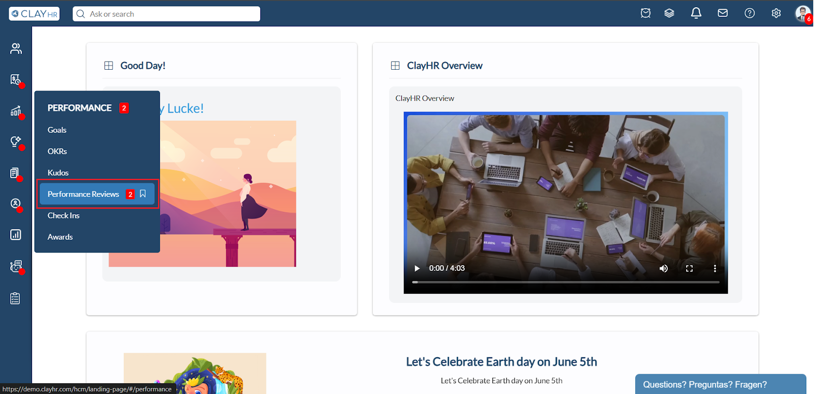 - Hover over the "Performance" icon in the left menu, then select “Performance Reviews”.