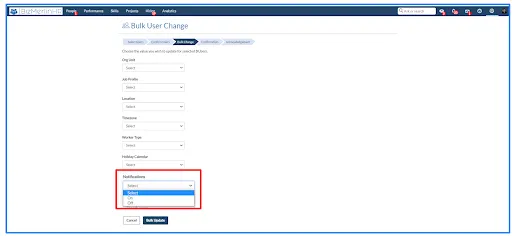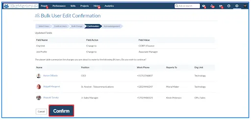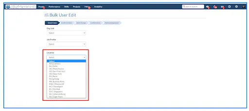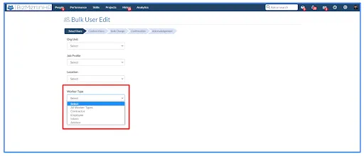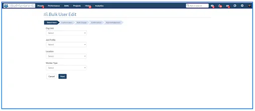 Bulk User Update enables you to update ‘Org Unit’, ‘Job Profile’, ‘Location’, ‘Reports To’, ‘Time zone’, ‘Holiday Calendar’, and ‘Worker Type’ of multiple users at the same time.