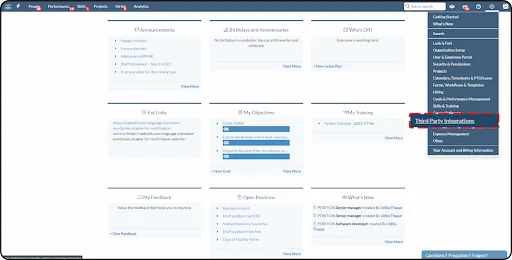 Log in to ClayHR and from the Setup Menu, go to Third Party Integrations.