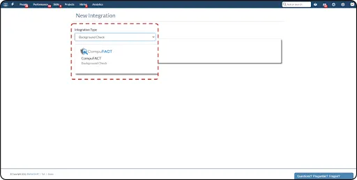 Click on ‘New Integration’, and select “Background Check” from the ‘Integration Type’ drop-down menu.
