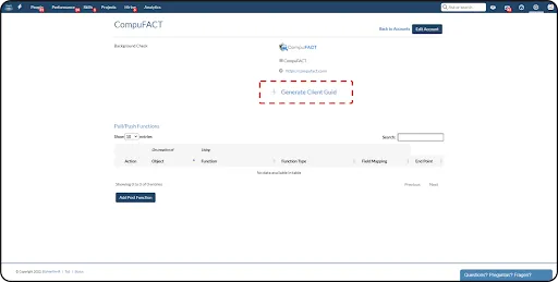 Upon receiving an email confirmation from the CompuFACT team, go to the integration view page and click on the “+Generate Client GUID”.