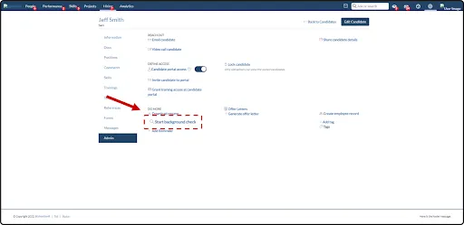 On the candidate view page, go to the Admin tab and under the ‘Do More’ section, click on “Start Background Check”.