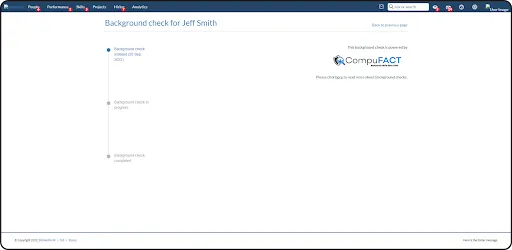 On initiating the background check, the process begins, and on the view page, the steps can be seen: