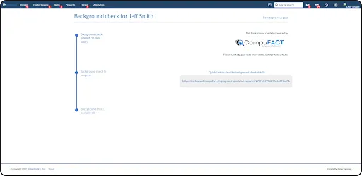 - Completion: Once the background check is completed, the last stage gets highlighted and a link to the report is added.