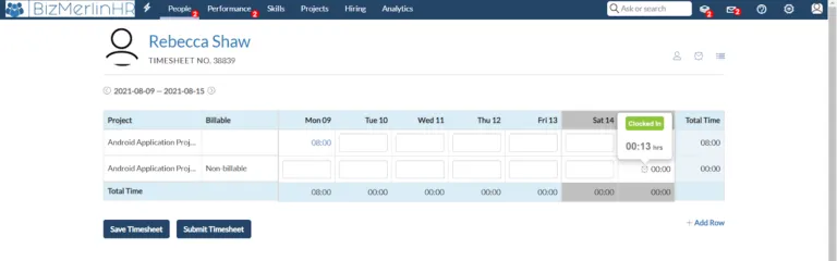 - The total time is calculated automatically on the basis of the clock in/ clock out.