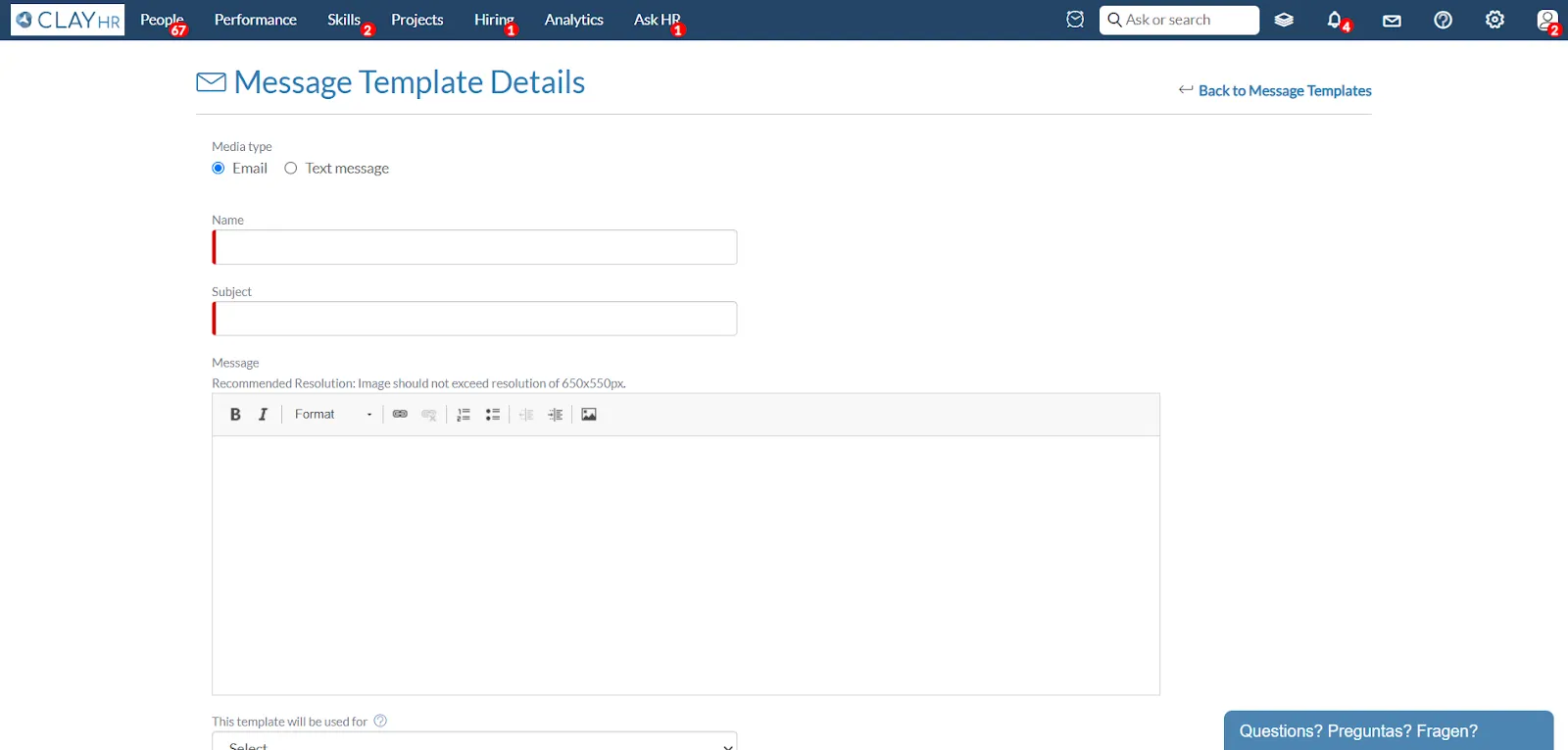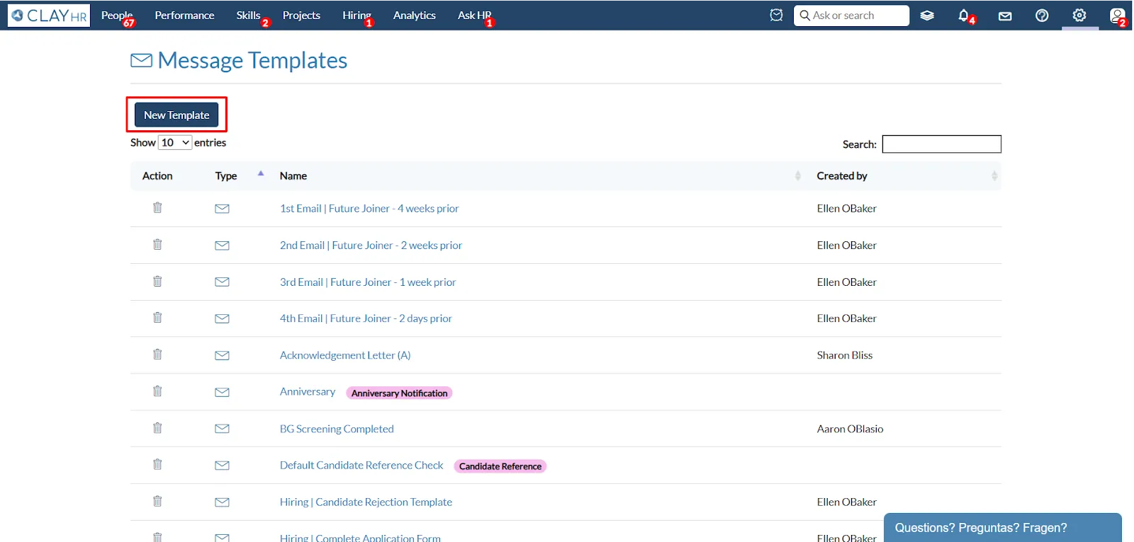 Your new template will now be available for use across ClayHR communications.