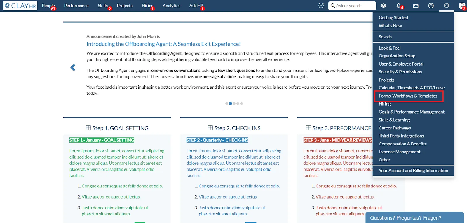 - Scroll down and select Forms, Workflows & Templates.