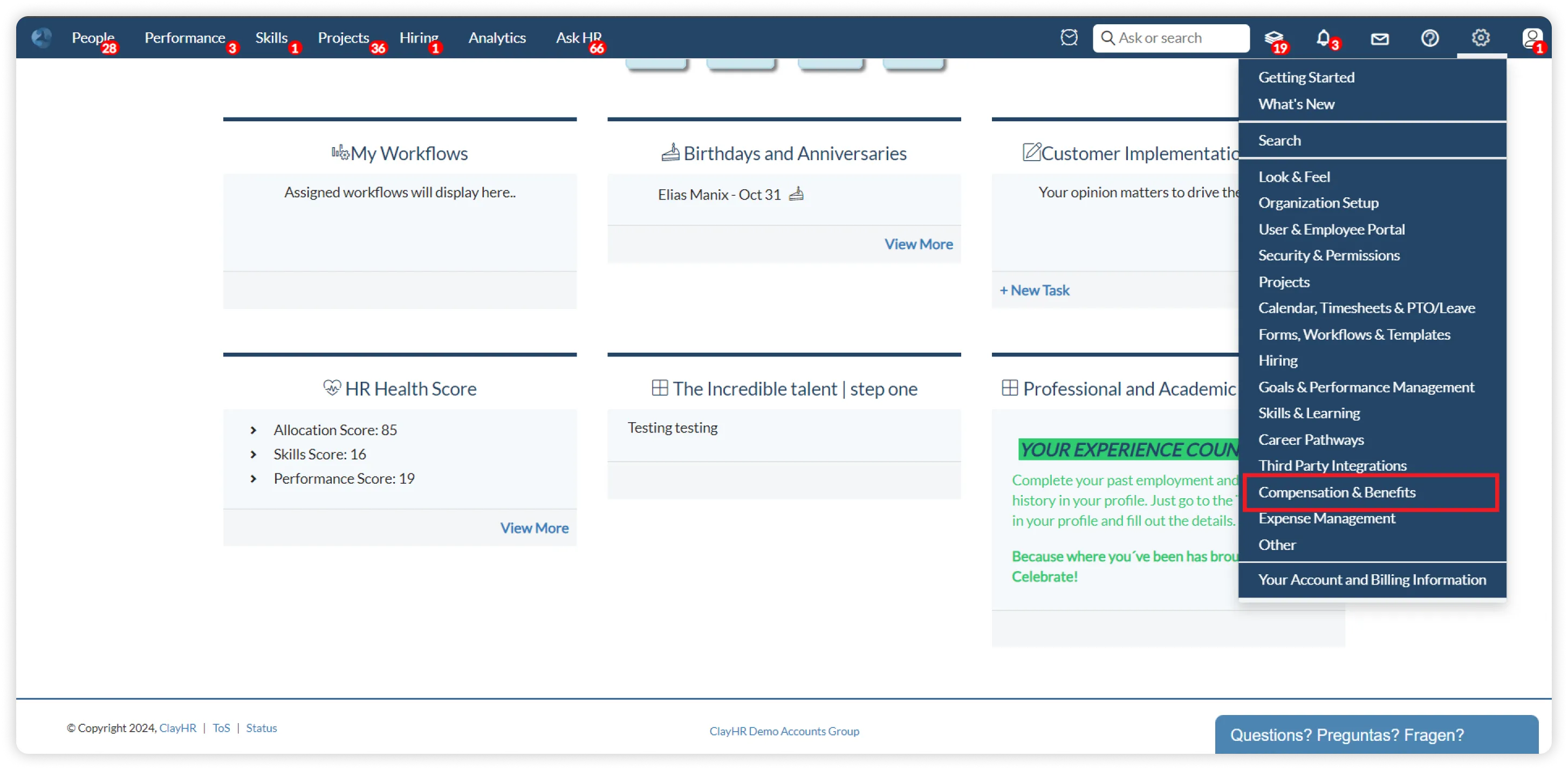 - Navigate to Payroll Run under the ‘Compensation & Benefits’ Page using the path: Setup Menu > Compensation & Benefits. On Compensation & Benefits Page > Payroll (Left Menu) > Payroll Run