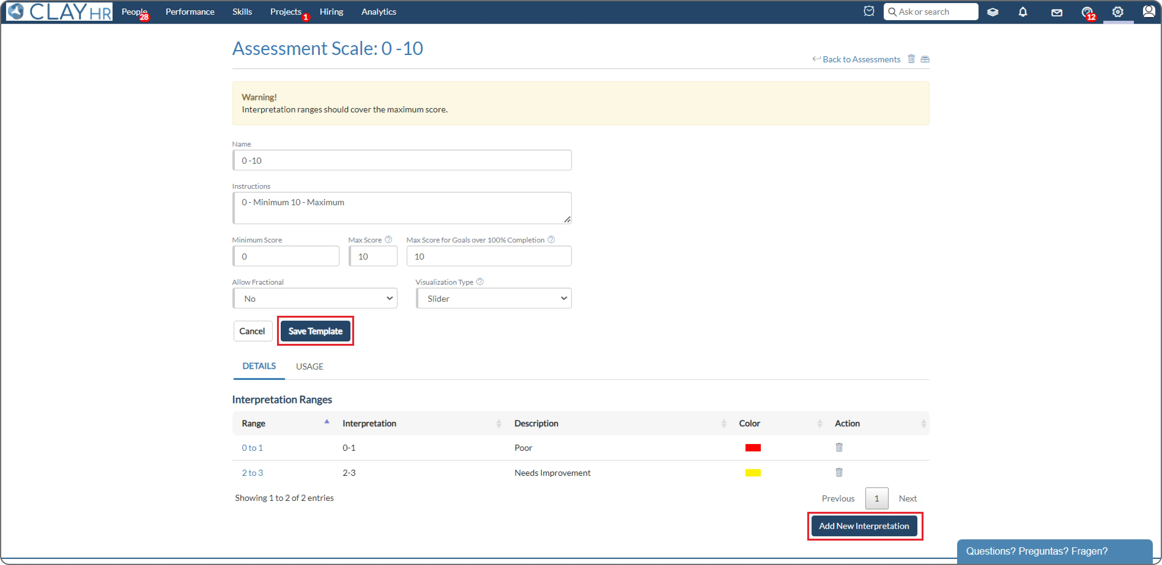 - Add Interpretation Ranges by clicking on Add New Interpretation.