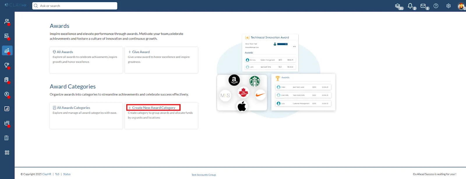 With ClayHR, you can set up different types of awards for your team. Define and customize award types that match your organization's needs by using 'Award Categories'.