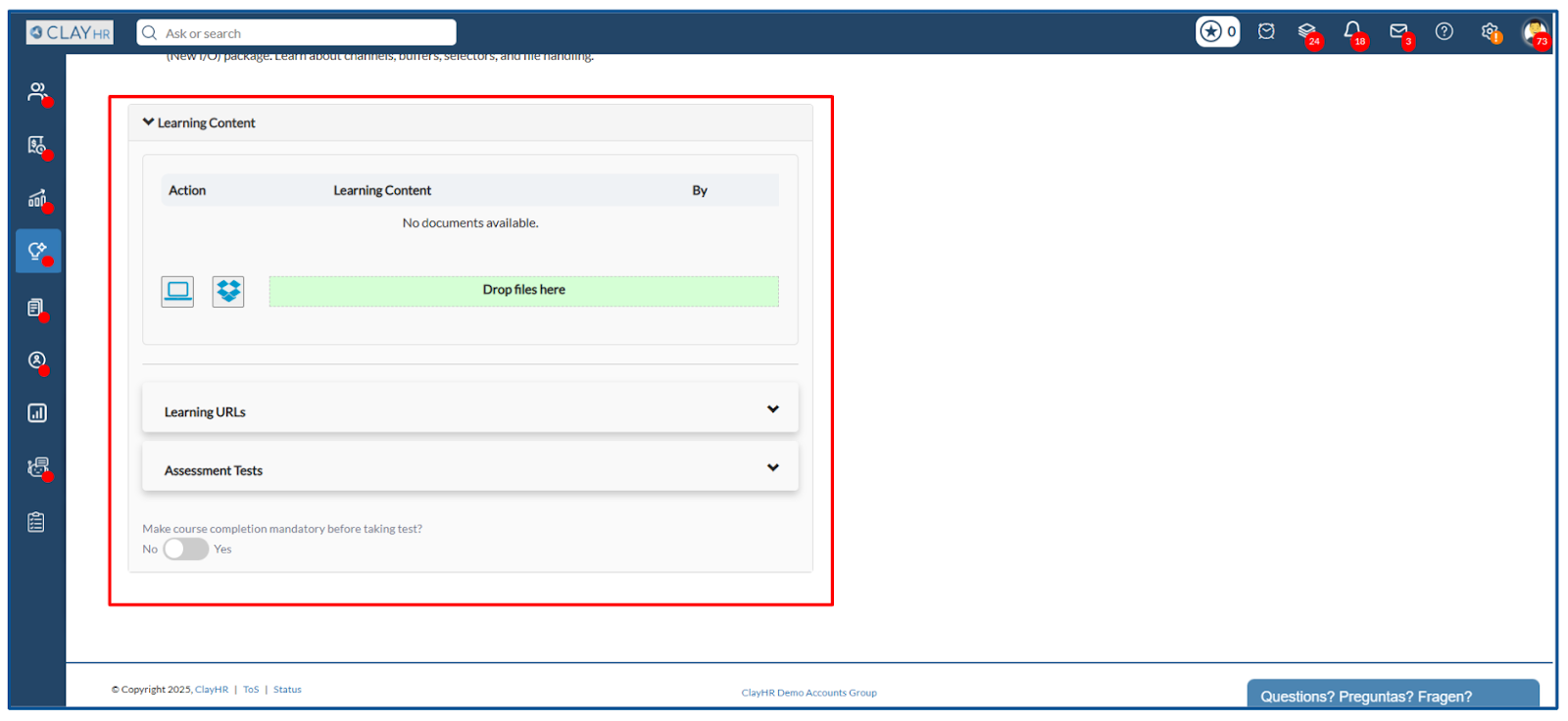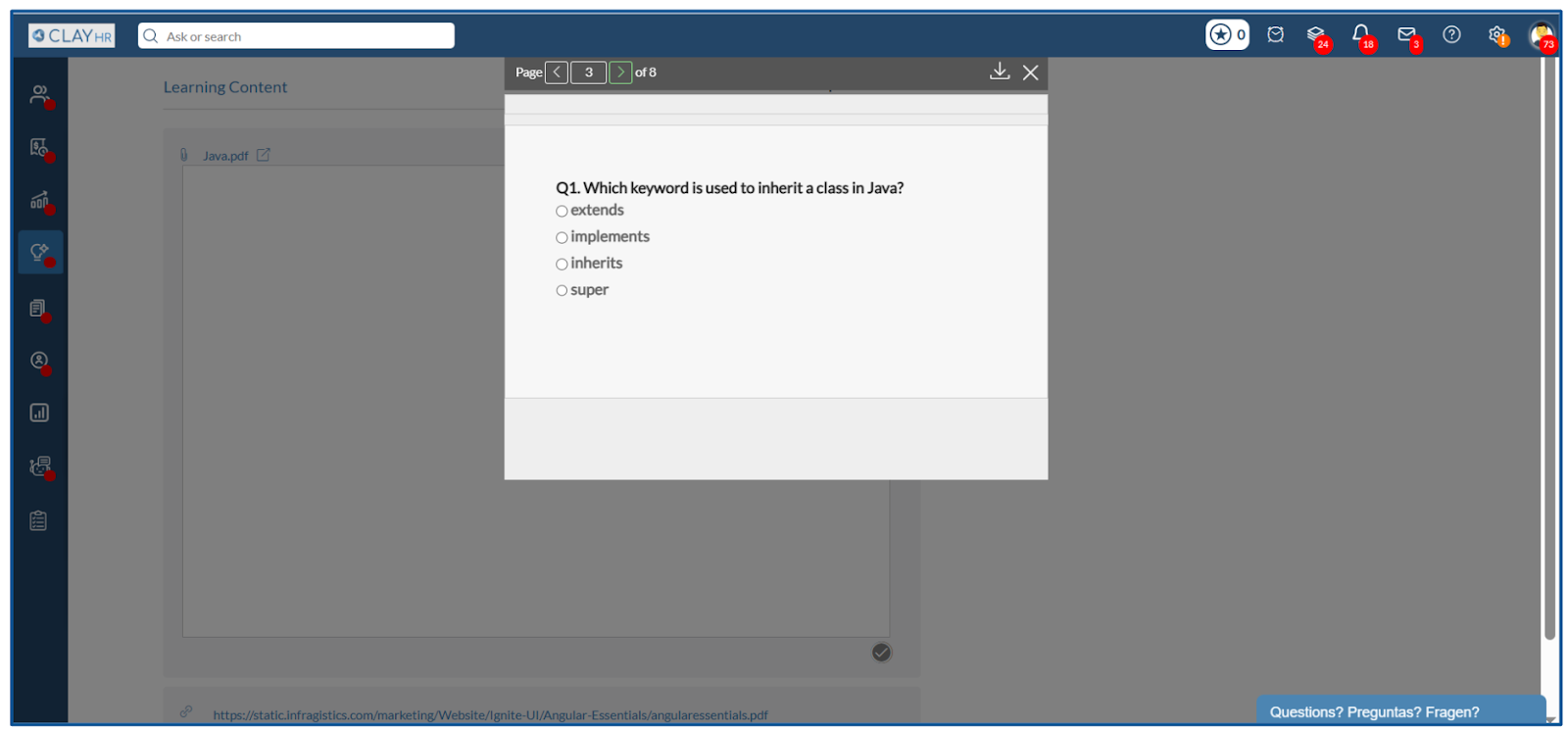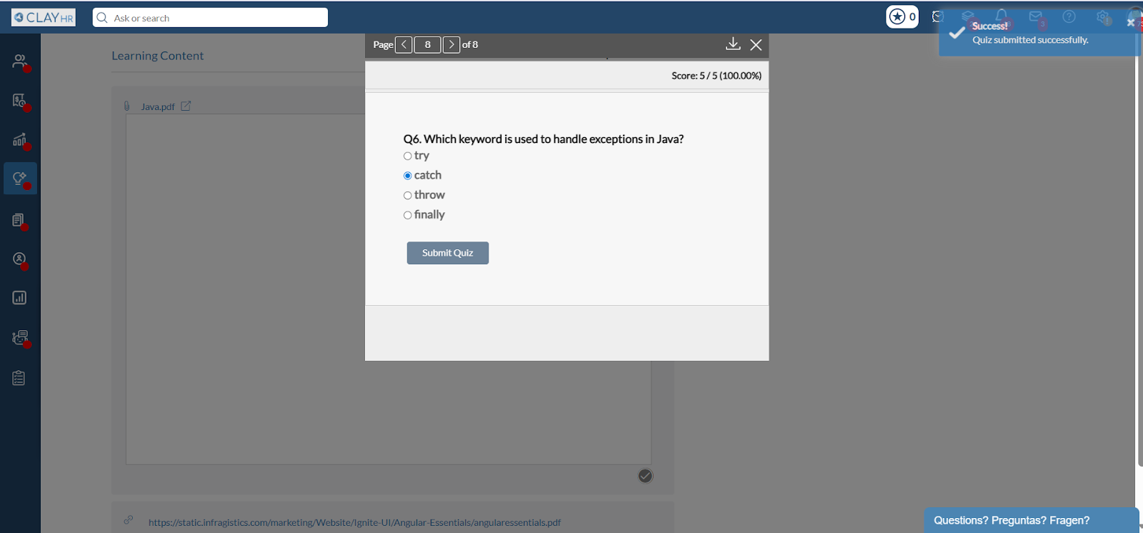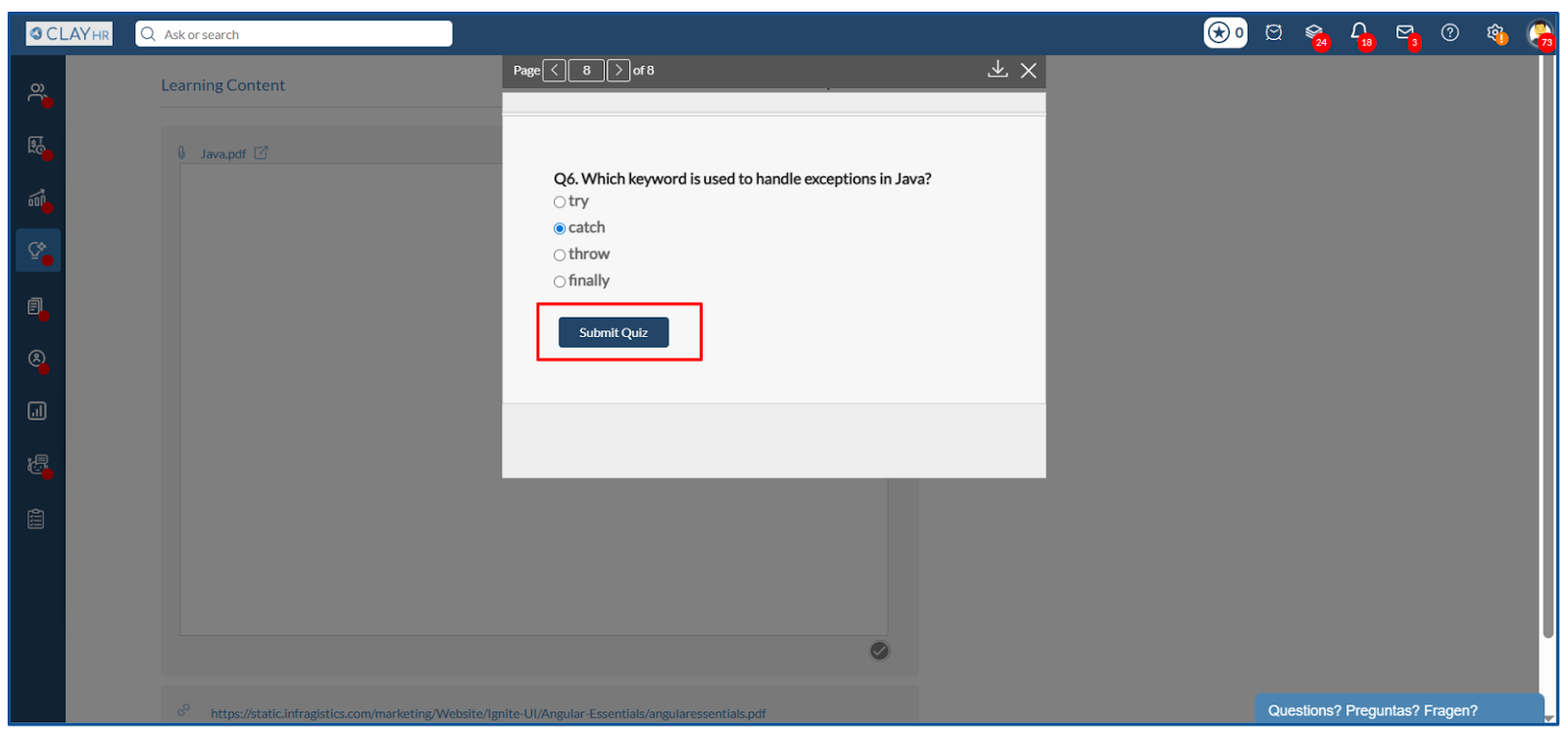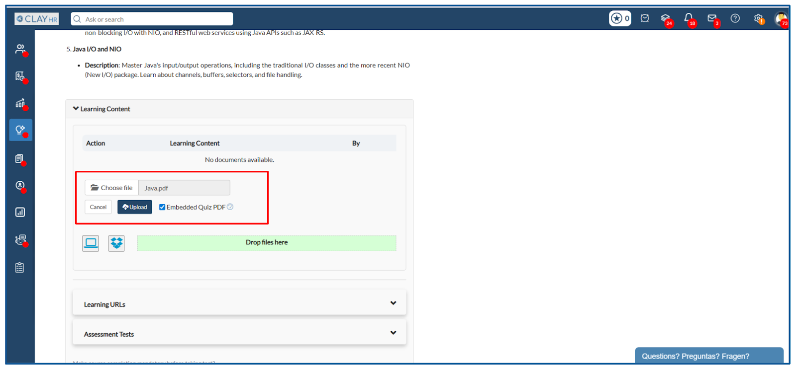 Embedding a quiz directly within your learning content enables learners to review material and test their knowledge in one seamless experience. This approach reinforces learning and offers immediate feedback. Use the steps below to embed a quiz PDF into your learning content and assign it to your learners.