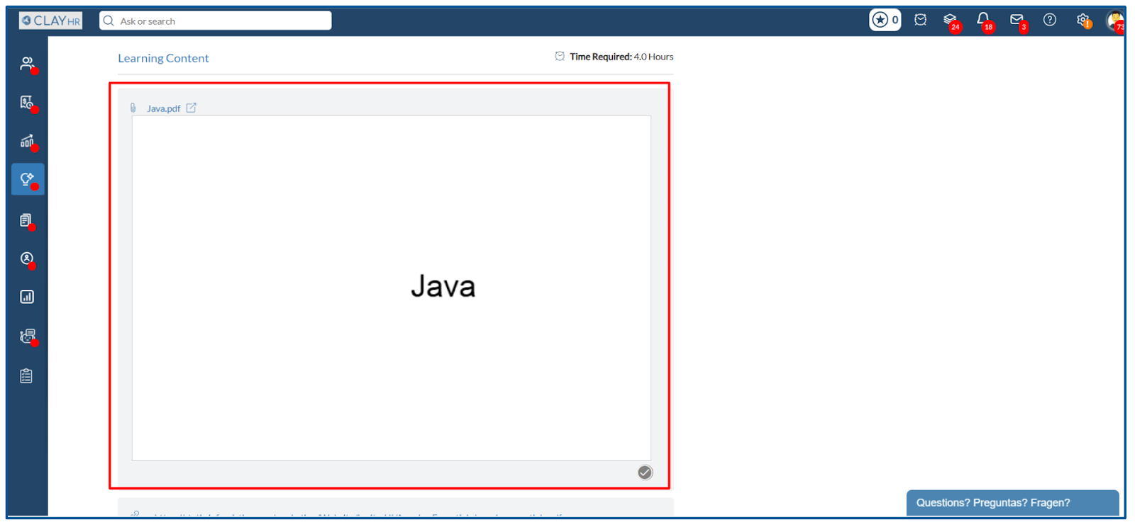 9. Navigate to the User Learning View page and open the PDF listed under Learning Content. This PDF contains the learning material and embedded quiz.
