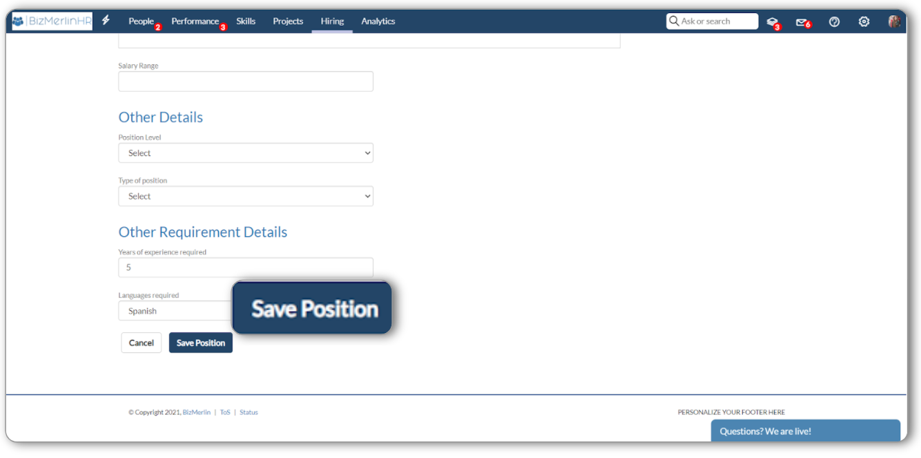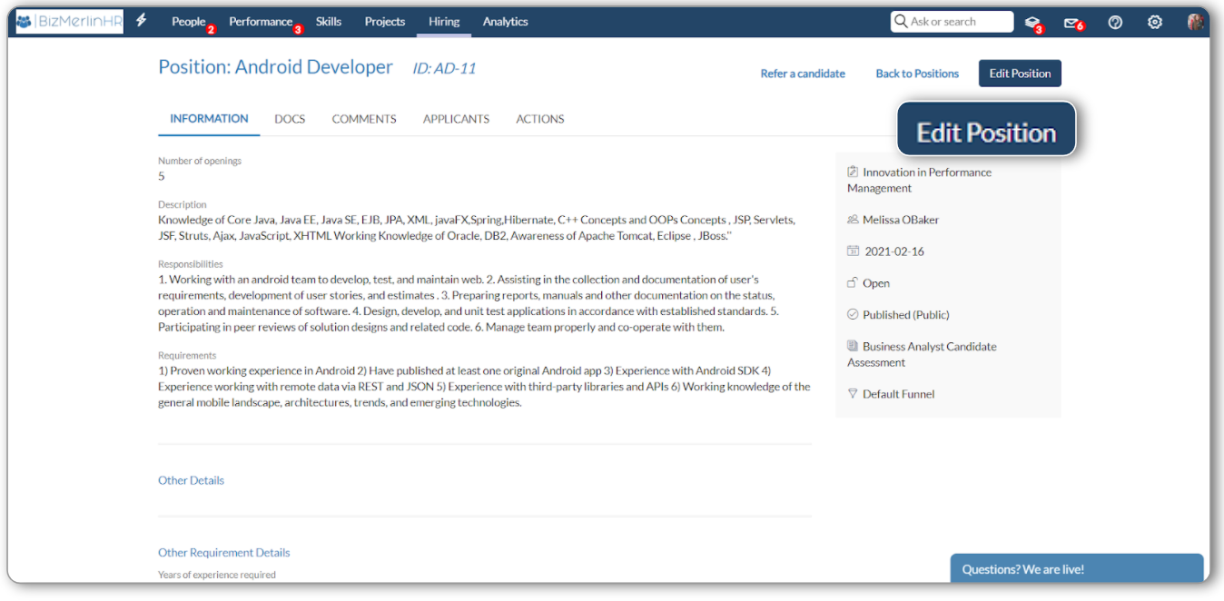 - Navigate to the position with which you want to link this form. Open the position details page by clicking on the “Edit Position” button.