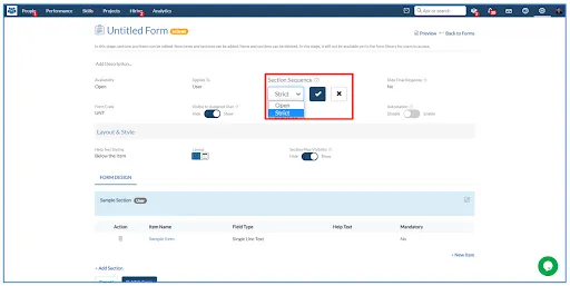 - Select the sequence of the sections of the form: either ‘Open’ or ‘Strict
