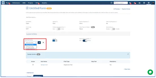- Select help text styling: either ‘Below the Item’, ‘Above the Item’, or ‘As a placeholder’.
