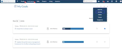 3. To view the archived goals, navigate to the Performance module and select “Archived Goals”.