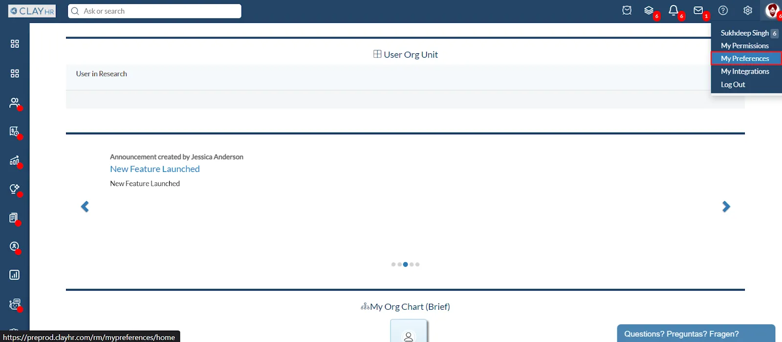 - Hover over the “Profile Icon” at the top right corner and click on “My Preferences”.