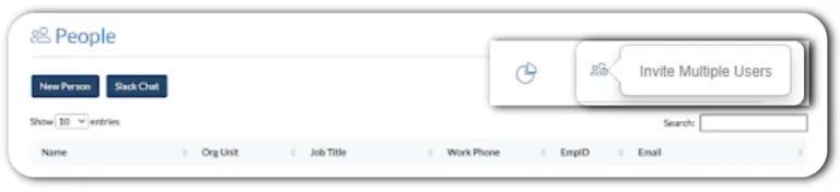 - By clicking on the “Invite Multiple Users” icon a popup appears which contains Org Unit, Location, and other options.