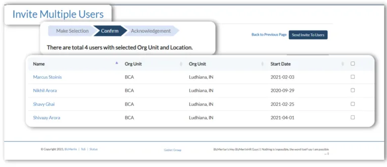 - After sending the “Bulk User Invite,” you’ll get a confirmation screen where you may check the box next to the users you want to include in the final list.