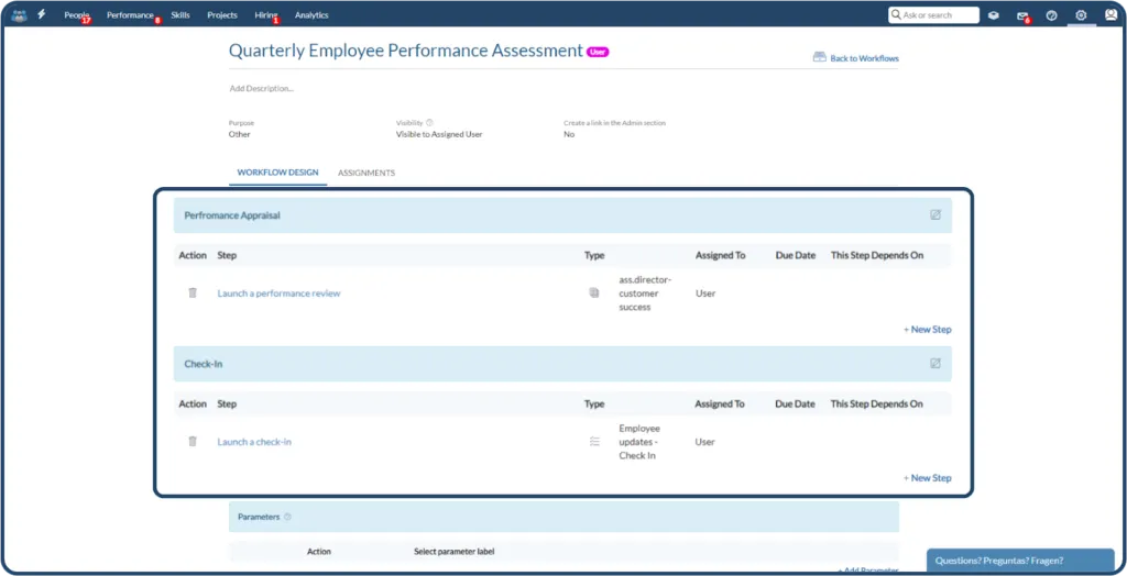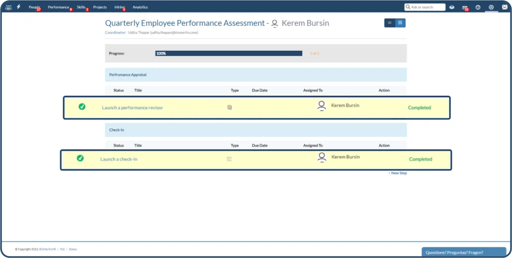 3. When a performance review is assigned to a user from the workflow, it initiates two different “Assignment Type”:
