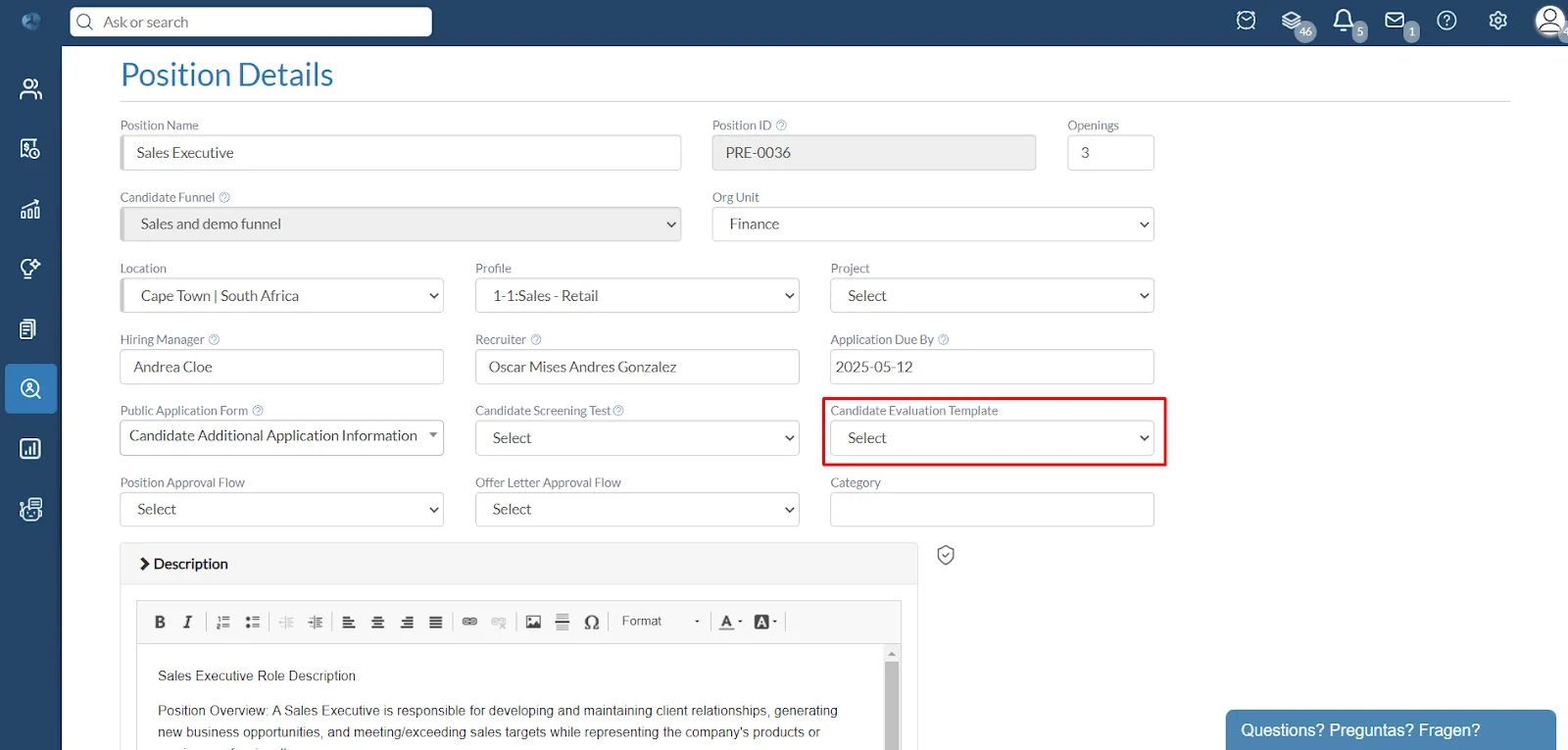 - Click on “Save”. You have linked candidate evaluation template to a position.