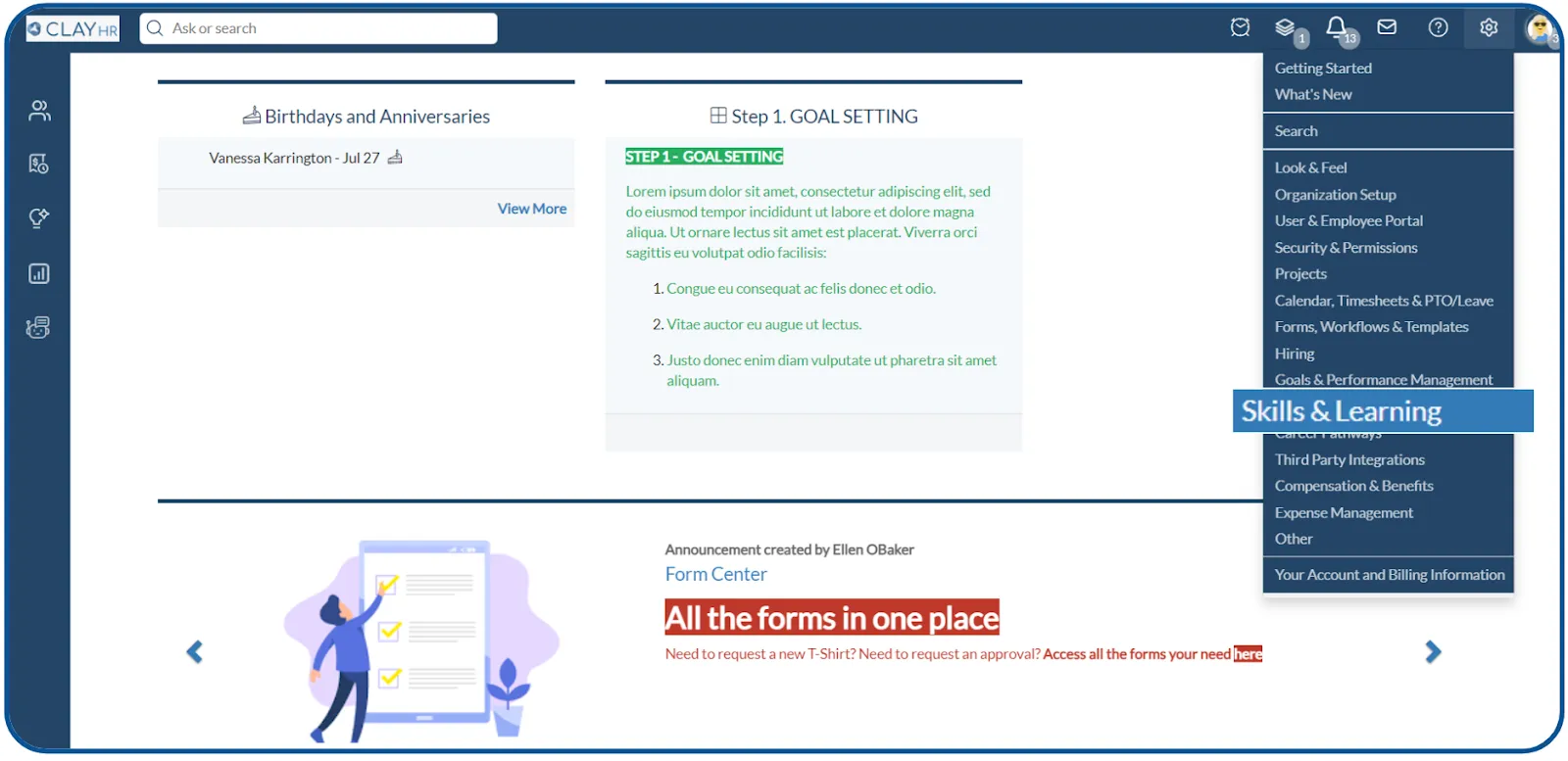 - Go to the "Gear" icon and open the "Skills & Learning" link.