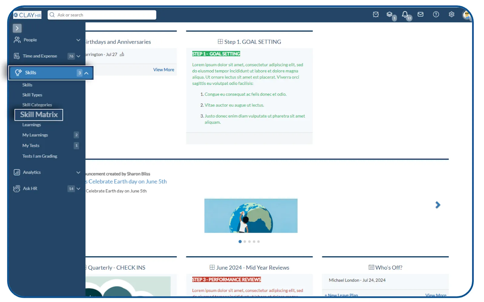 - Go to the "Skills" menu and open the "Skill Matrix" link.