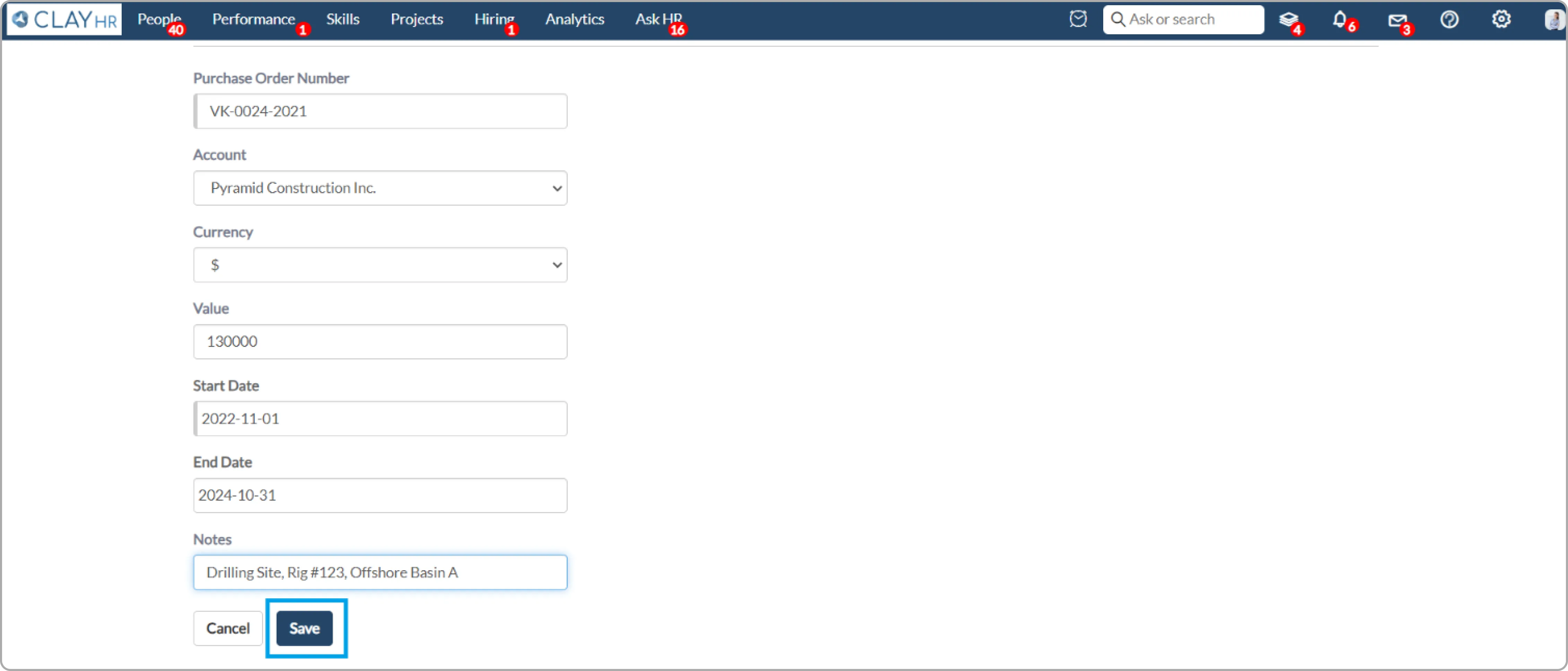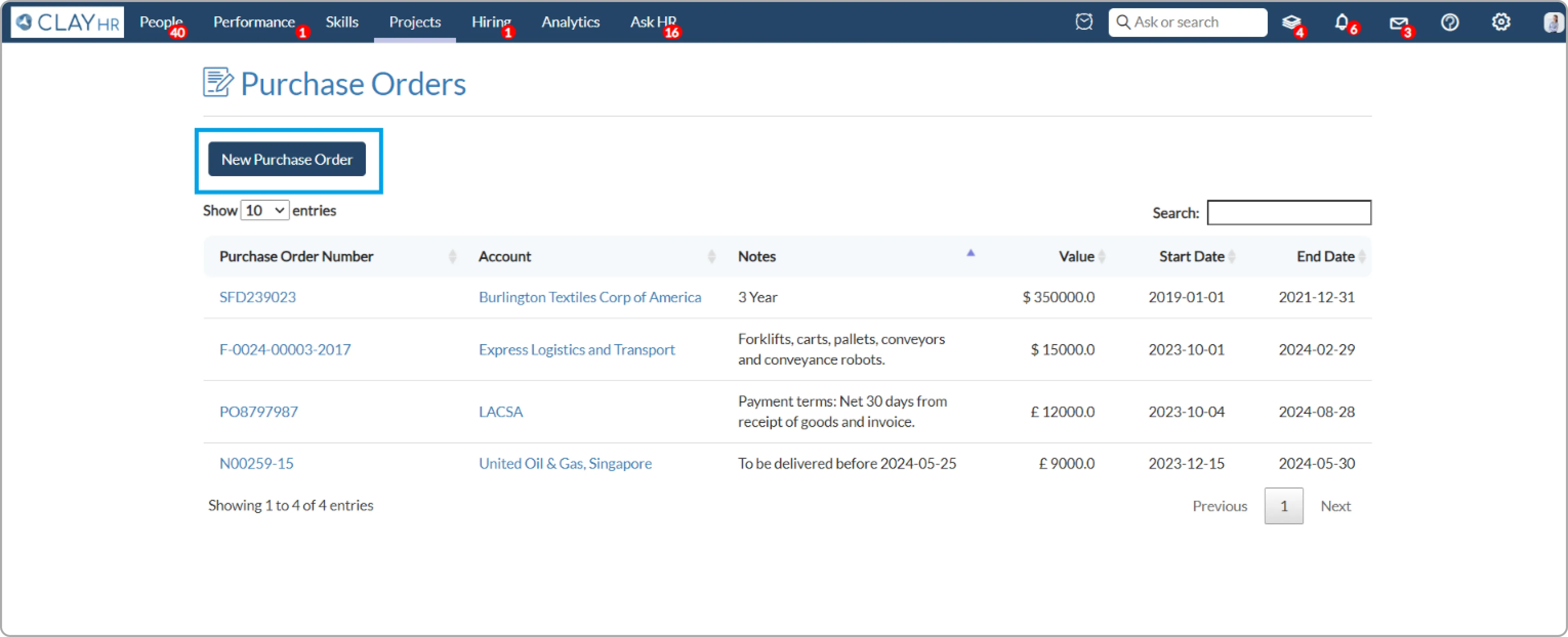 Effortlessly incorporate purchase orders into your project workflow using ClayHR. Streamline procurement, regulate project outlays, and ensure project budgets stay on track. Experience a seamless process that enhances efficiency and transparency in your project management journey.