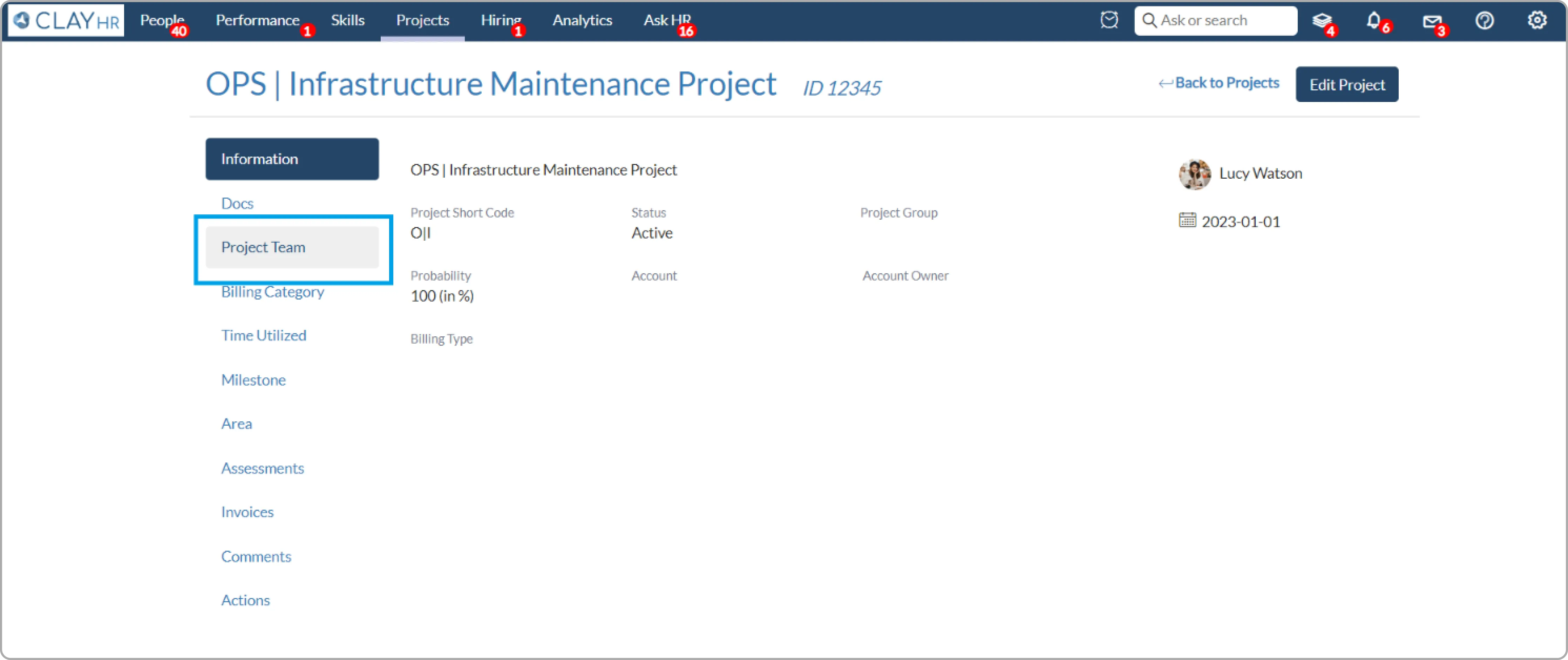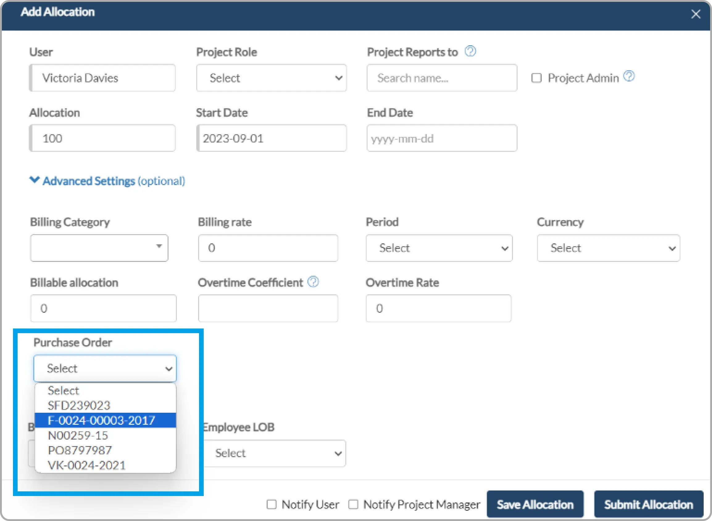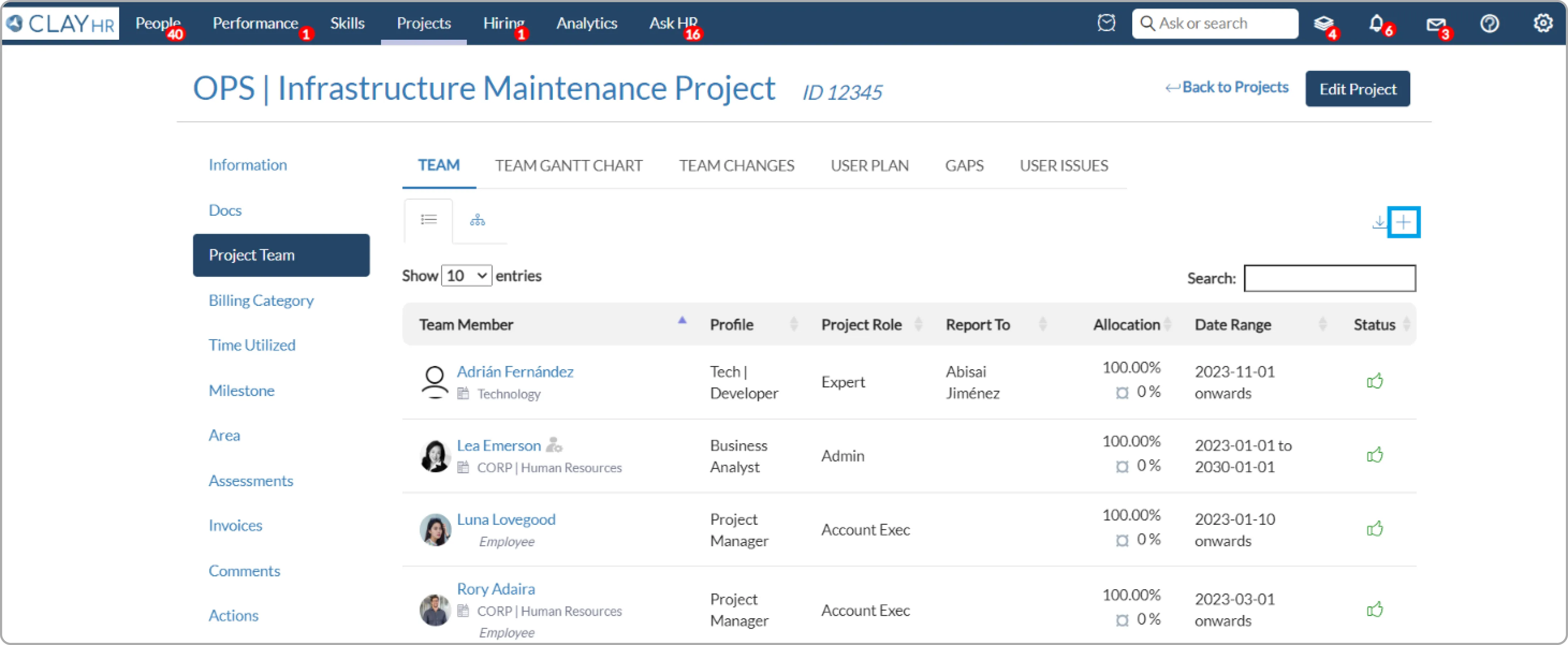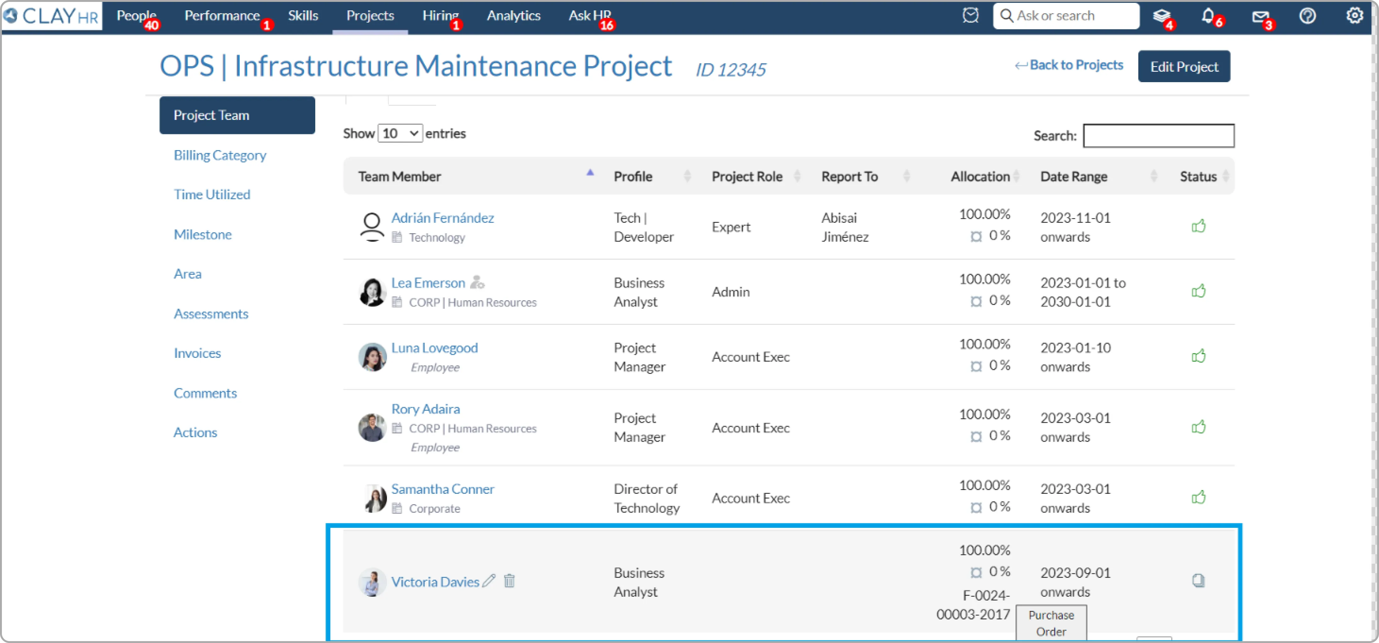 - To link the purchase order with a User Allocation, open a particular project and click on “Projects Team”.