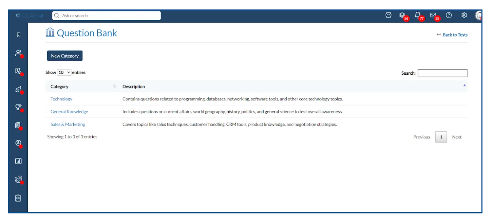 - Click on the category name, and it will redirect you to the "Question Bank" view page.