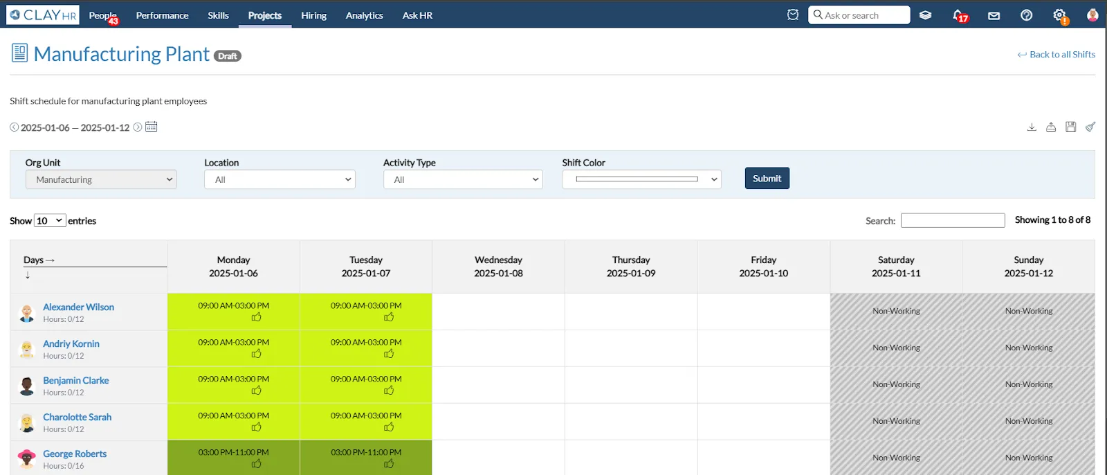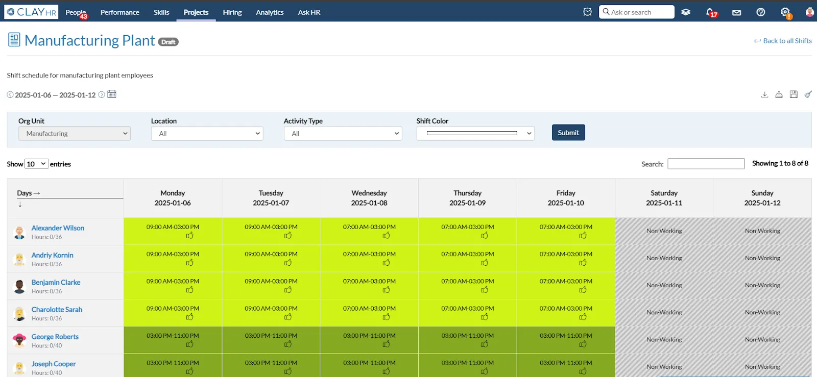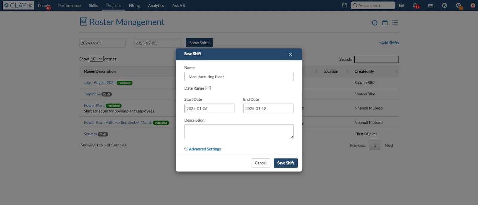 ClayHR allows you to streamline your employee's scheduling process. You can create the shifts by following the below-mentioned steps: