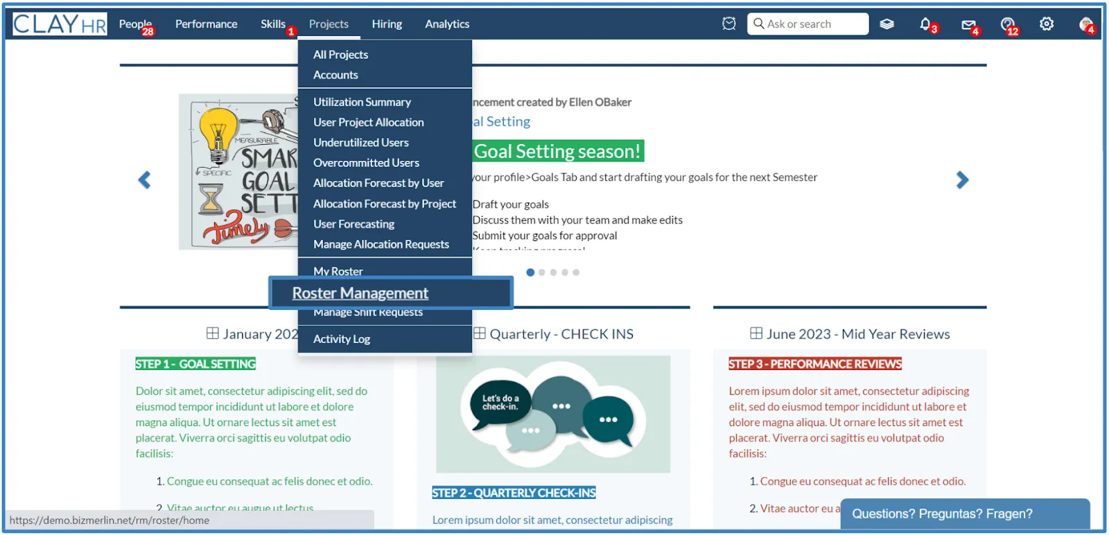- Go to the “Projects” module & click on the “Roster Management” section.