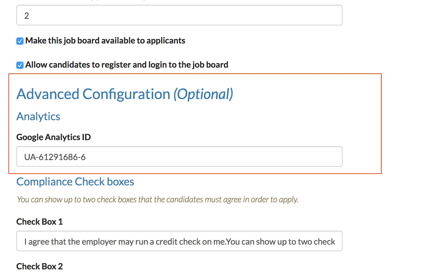 - Go to Advanced Configuration section and Fill the Google Analytics Id.