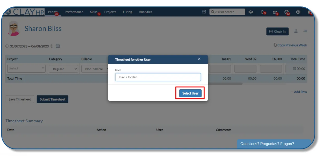 Submit Timesheet For Other User