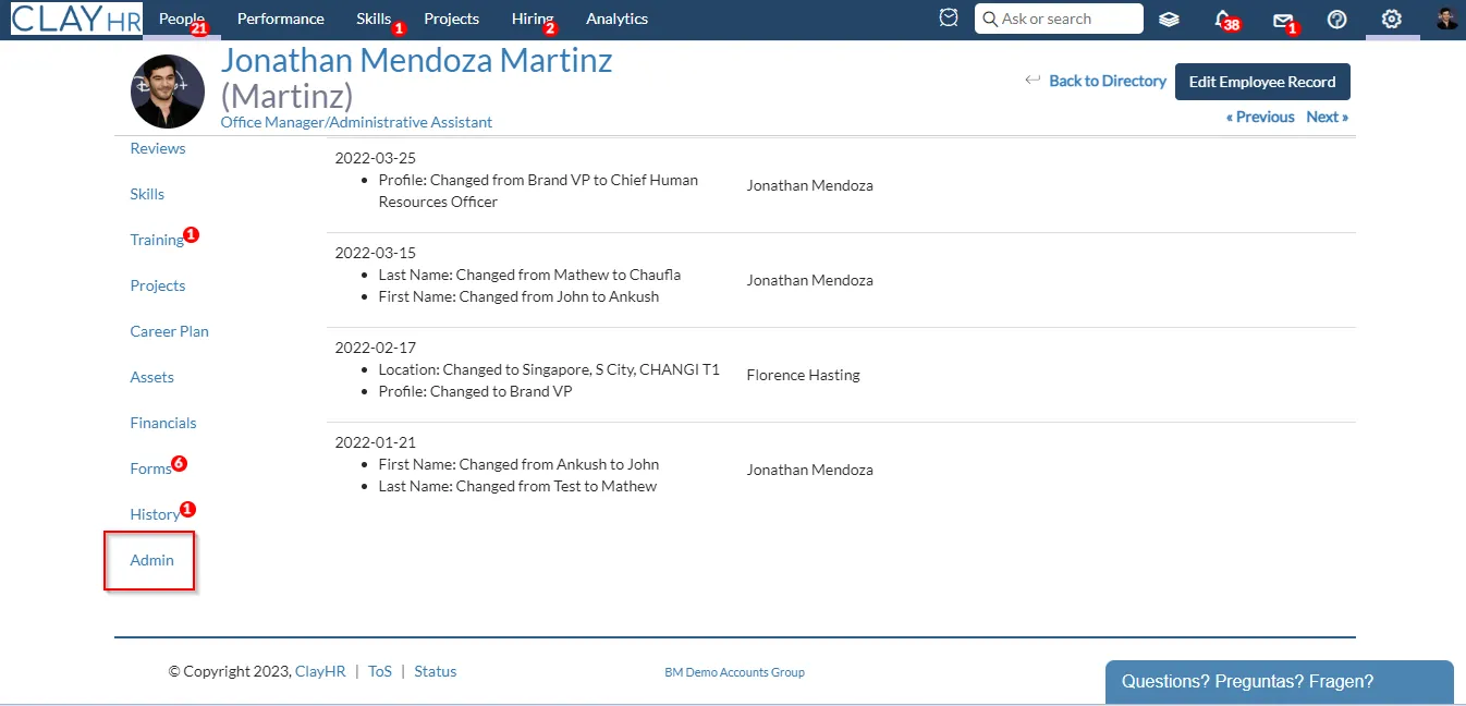 2. Click on the user’s name and you will be navigated to the employee record page.
