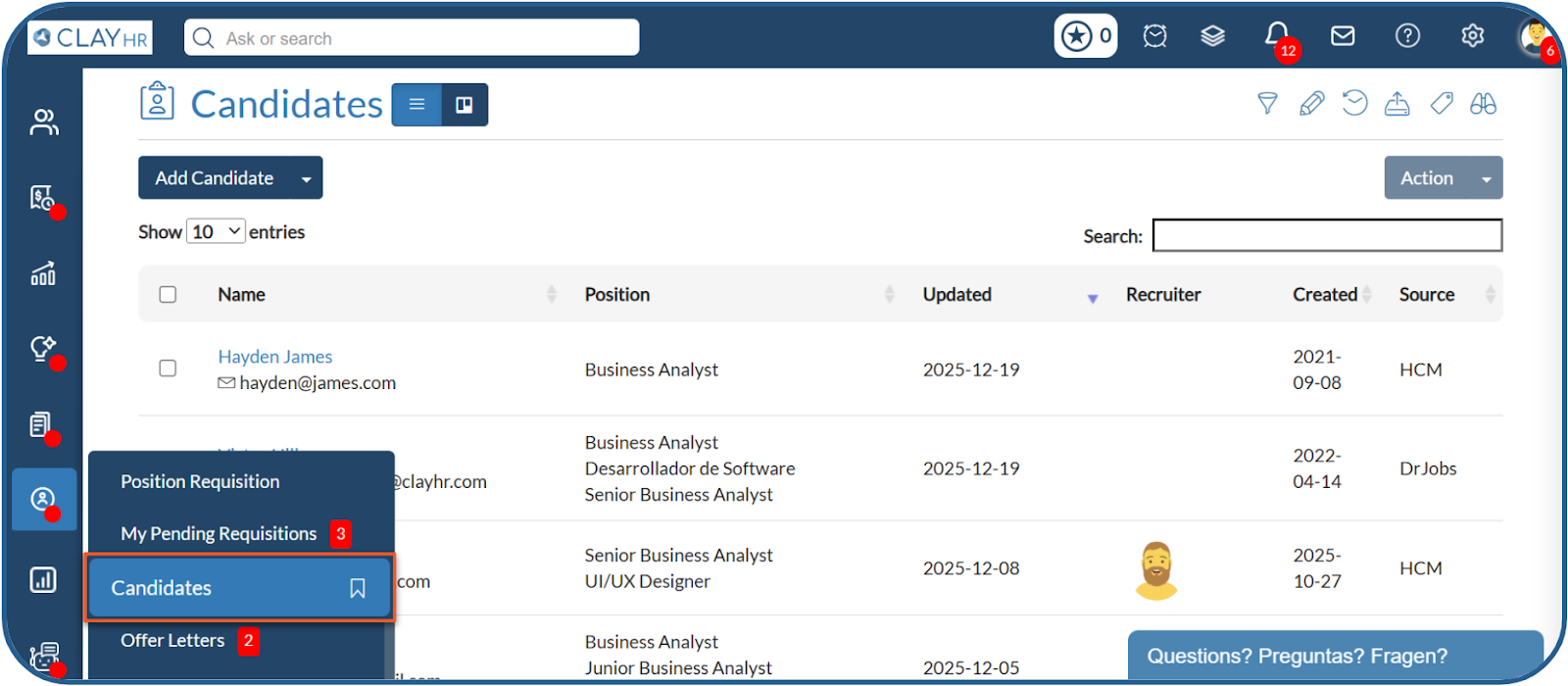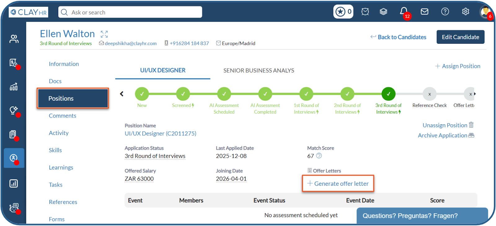 - Go to the Positions tab, and select the position for which you need to generate the offer letter.