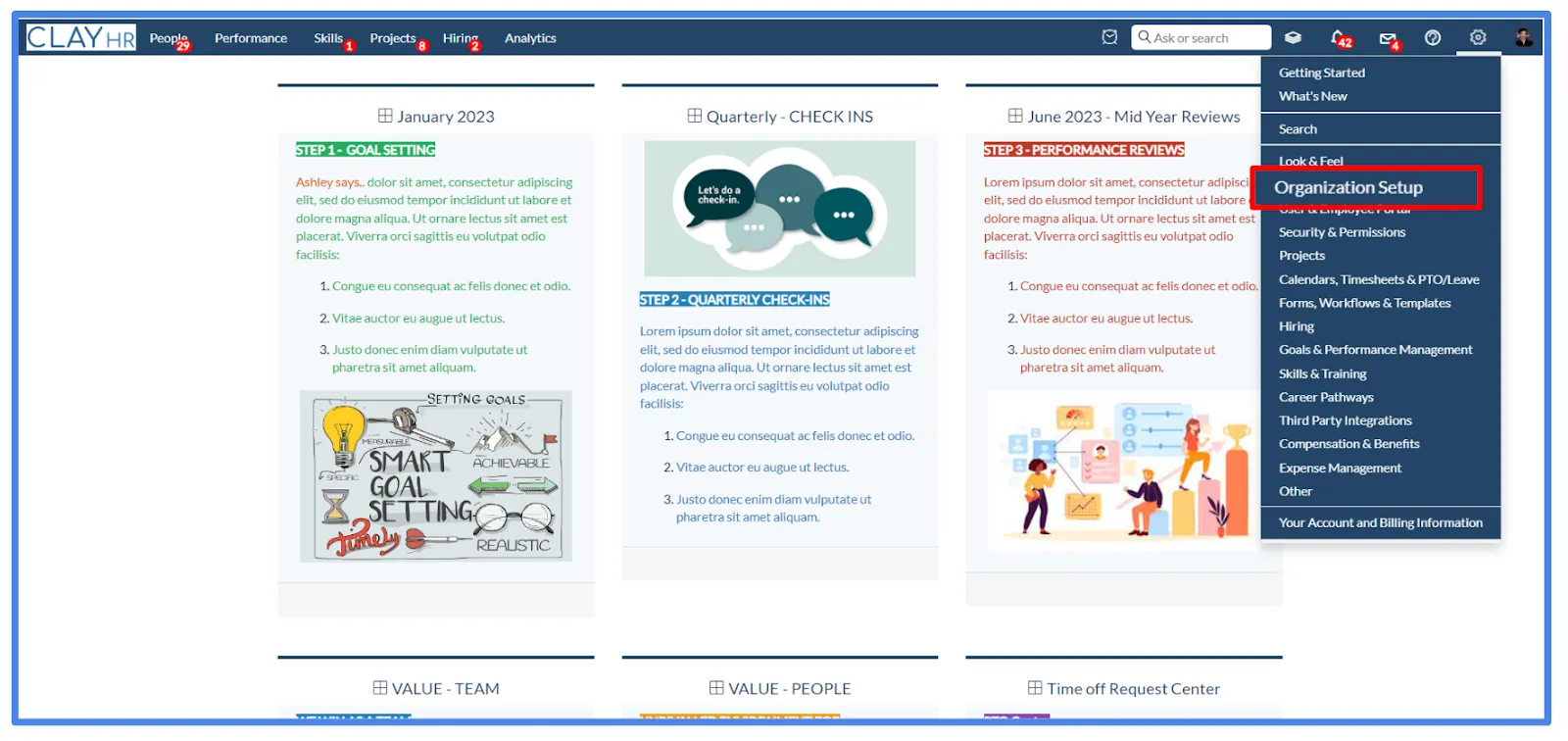 - Go to the "Gear" icon and open the "Organization Setup" link.