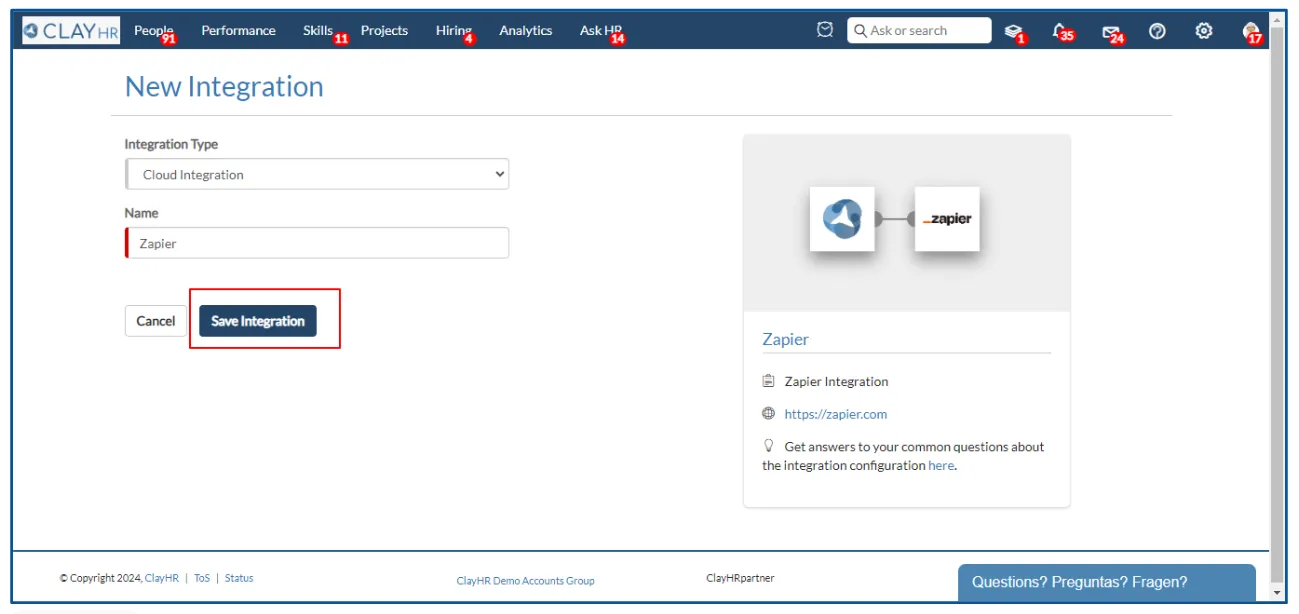 Here is a quick list of steps to configure the Zapier ClayHR integration: