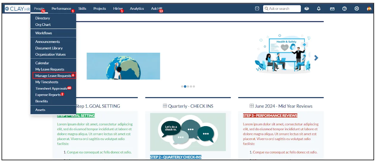 ClayHR provides a delegate feature for the users who can perform actions on behalf of primary users. You can add your Leave Request Approval Delegate to approve your Leaves by the below-mentioned steps: