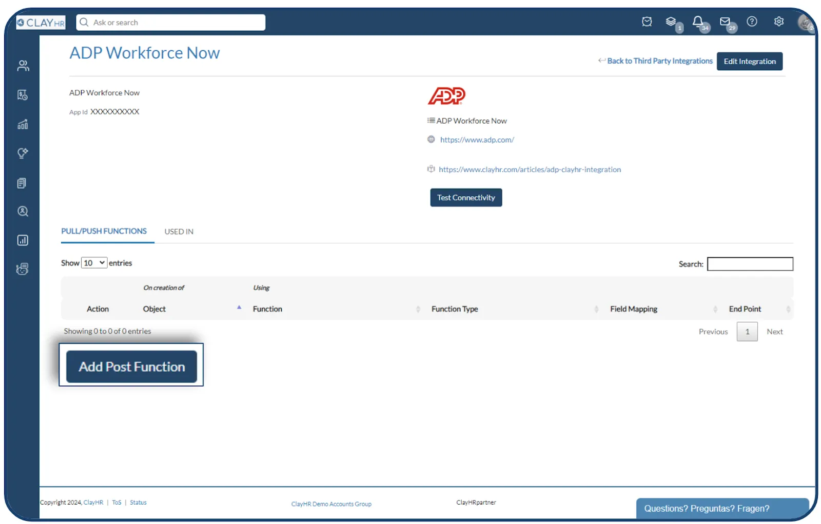 8. Add Push/Pull Operations: Click on Add Post Function to configure the push/pull operations associated with the integration.