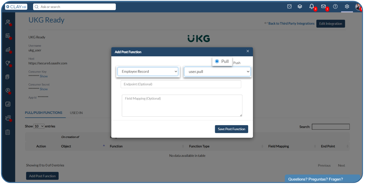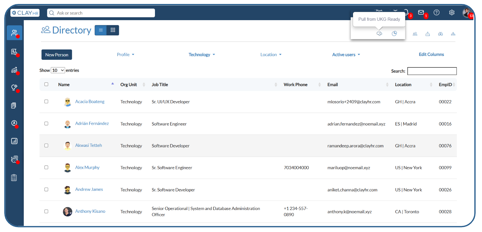 - Employee Record Synchronization (Pull): Automatically retrieve and update employee records from UKG Ready into ClayHR, ensuring that employee data remains accurate and up-to-date.