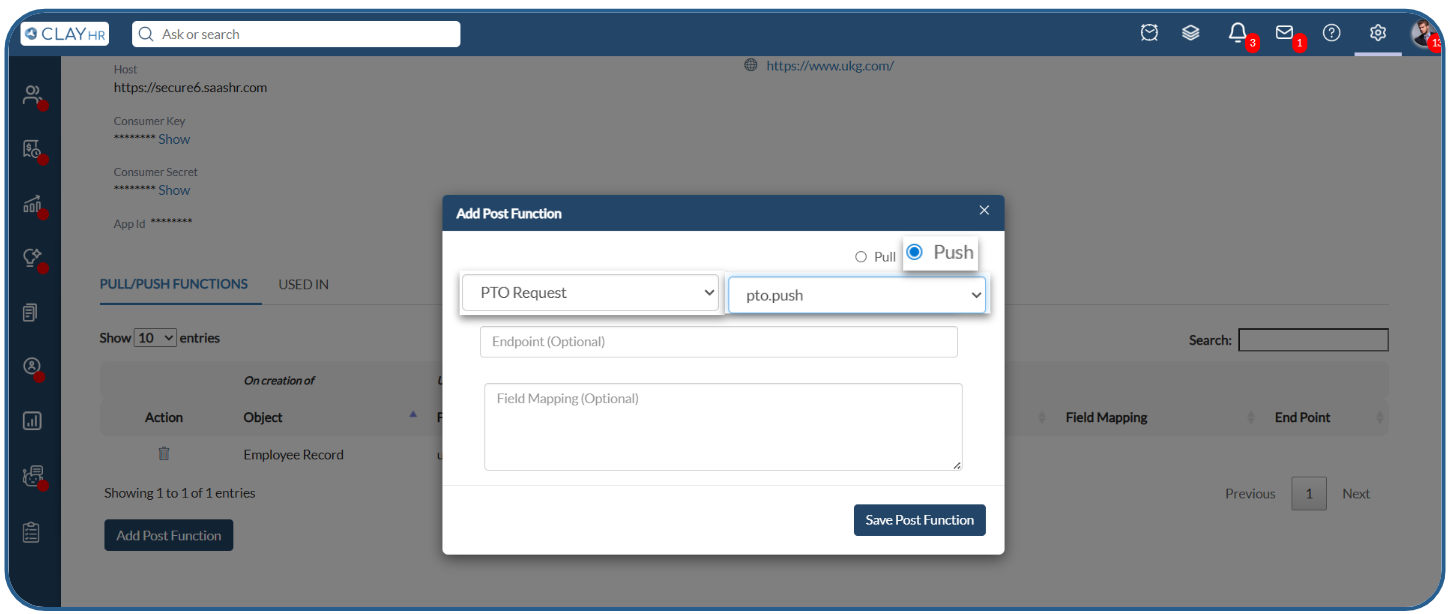 - Time Off Request Synchronization (Push): Effortlessly push time-off requests created in ClayHR into UKG Ready, streamlining leave management across platforms.