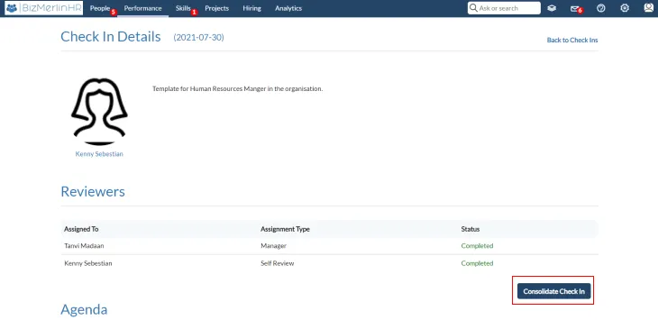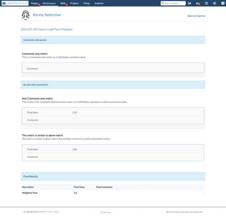 - Once consolidated, both the user’s reporter and reportee will be able to see the final results of the Check-In.