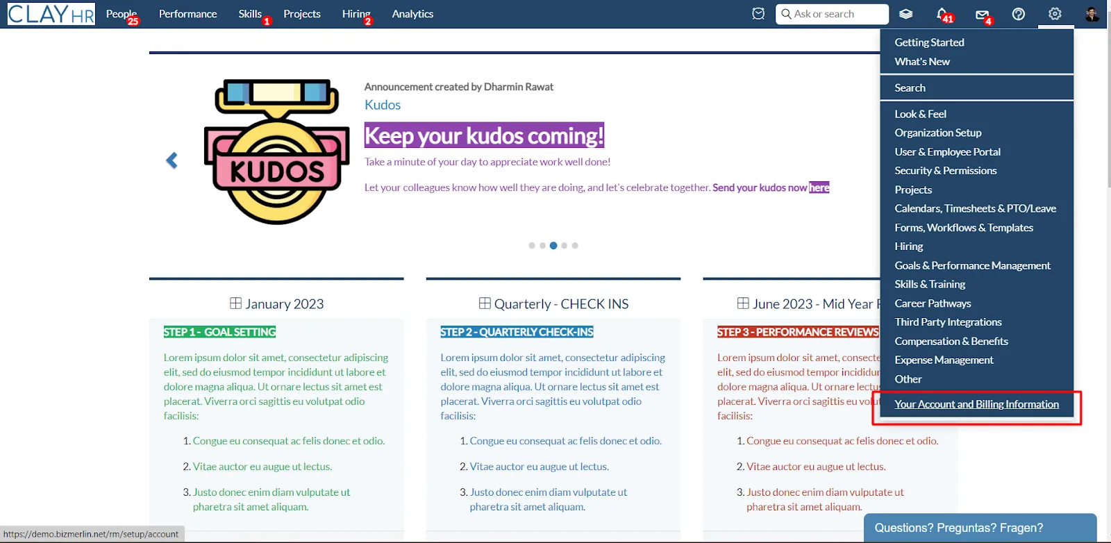 - Go to the Gear icon and open “Your Account and Billing Information”.