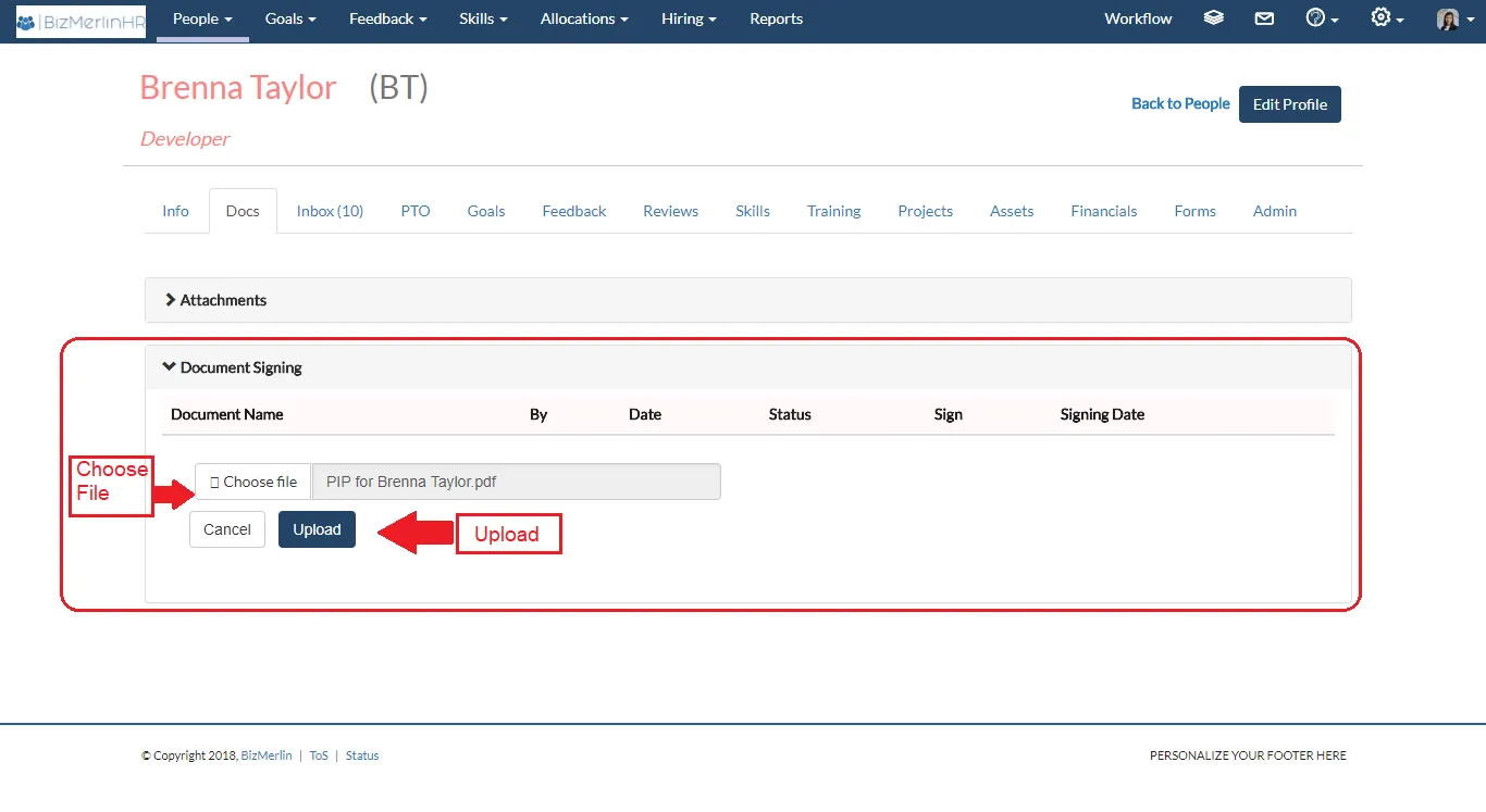 1. Go to User’s profile page and find the Docs tab and go to Document Signing panel.